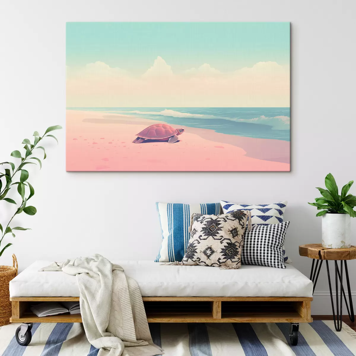 Schilderij Zeeschildpad op een roze strand: minimalistisch landschap Art. s45059