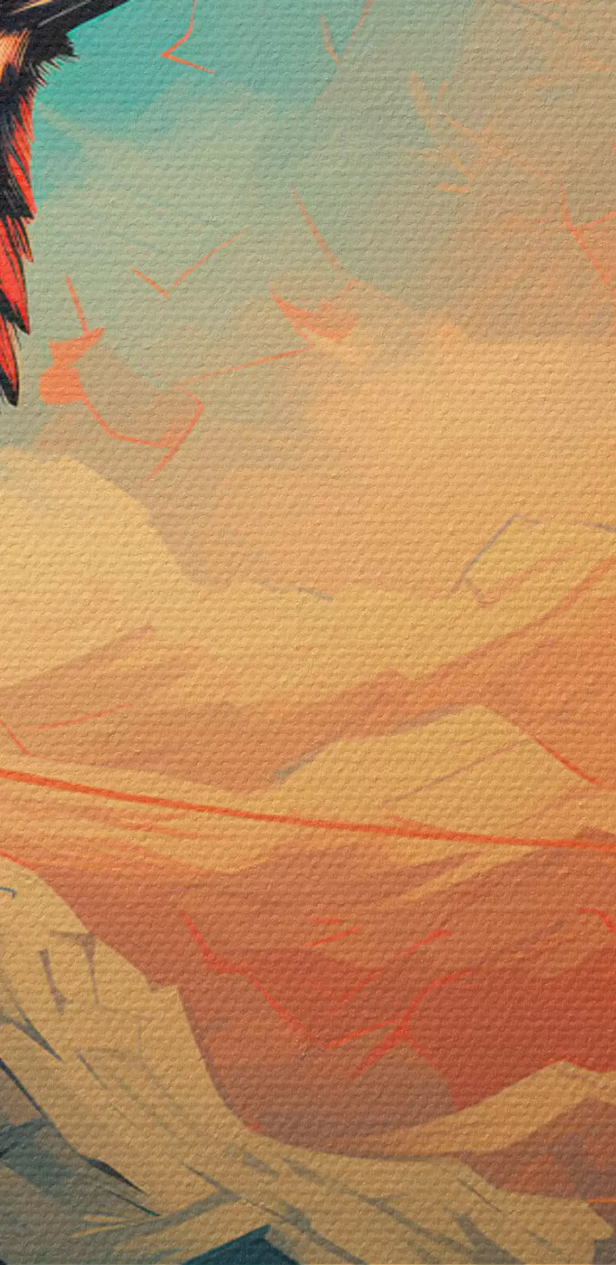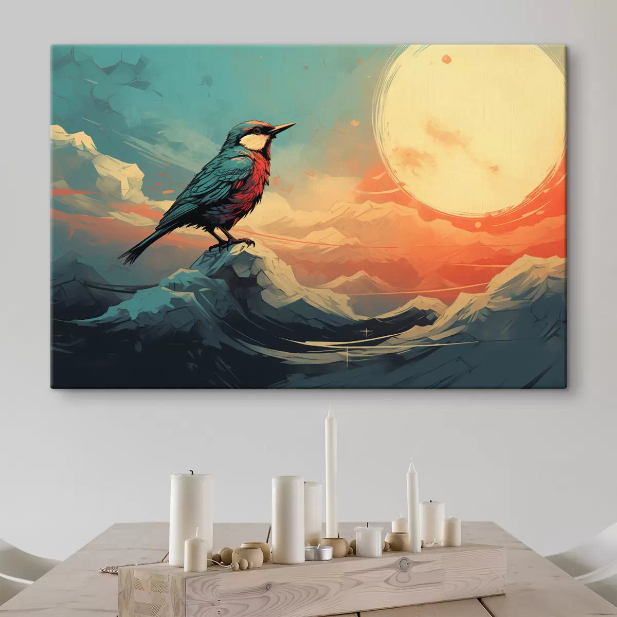Schilderij Artistiek landschap met vogel en levendige lucht Art. s45060