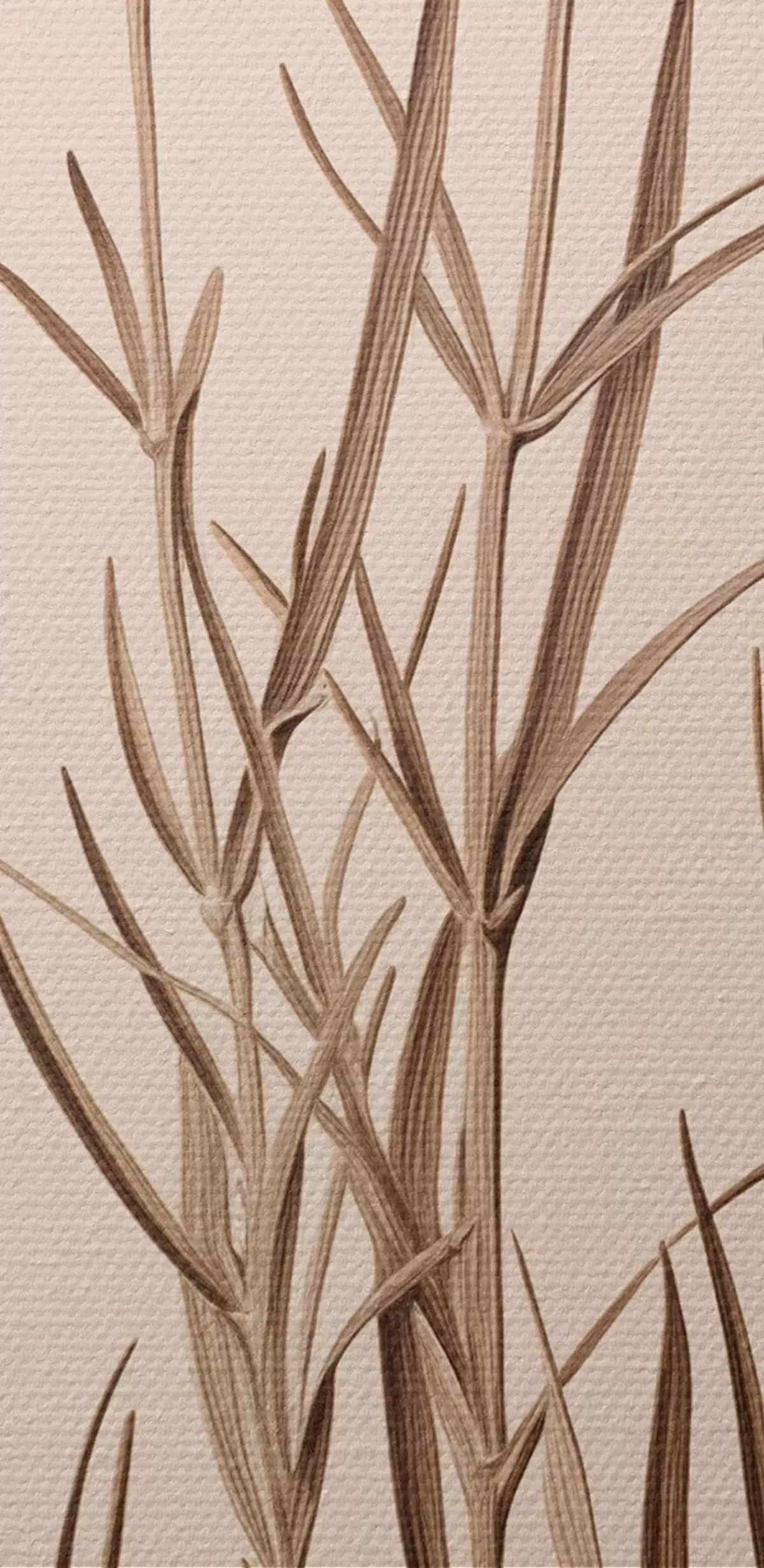 Schilderijen lavendel, botanisch, beige achtergrond, zacht paars, bladeren, bloemig, natuurlijk, stengel s45100