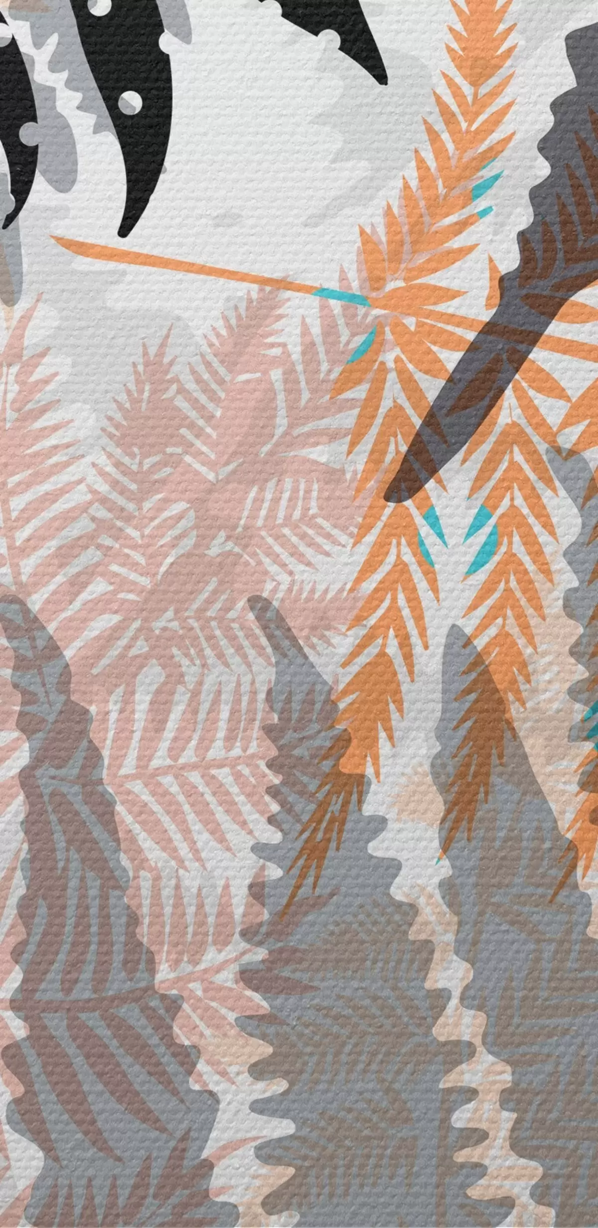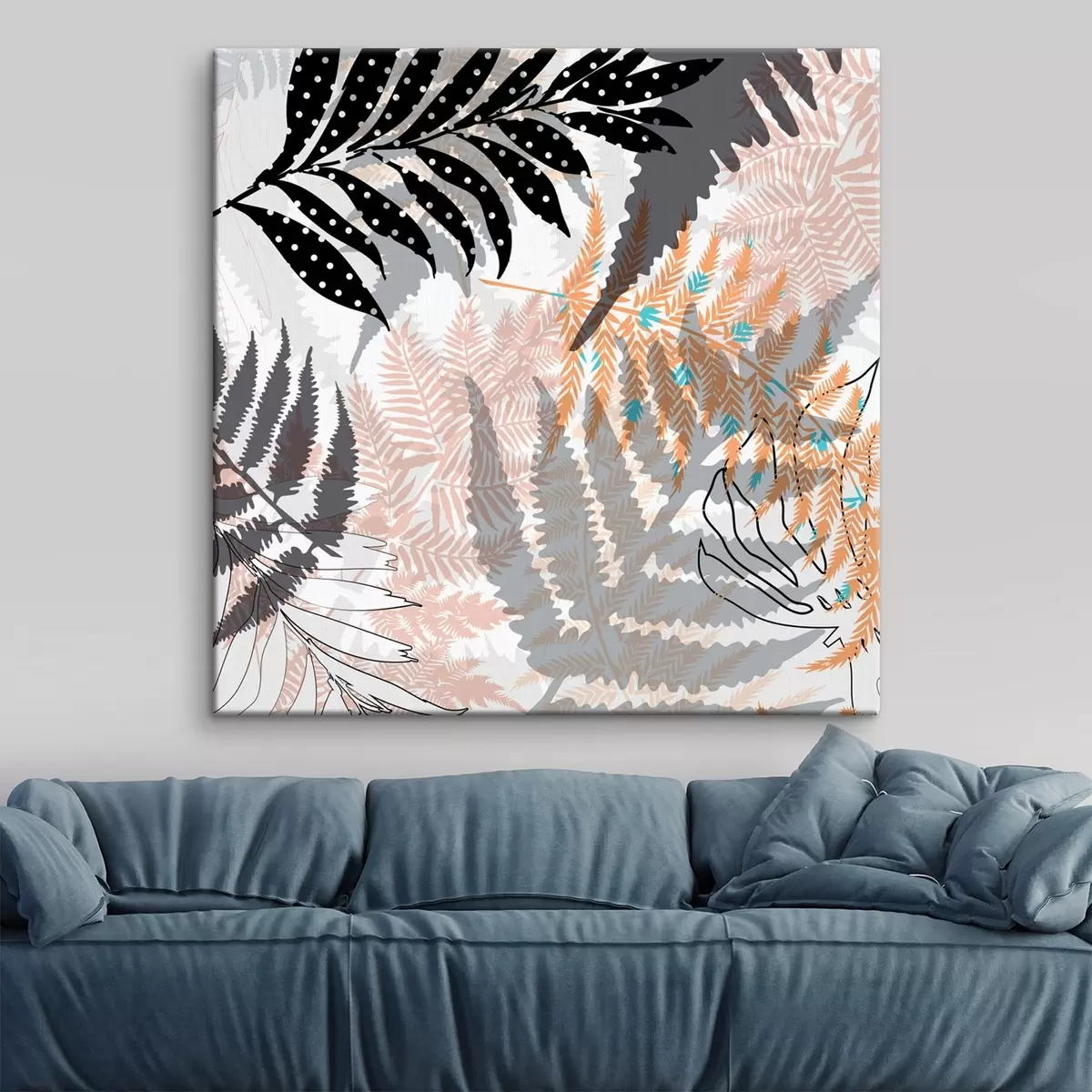 Schilderij tropische bladeren, grafisch, textuur, beige en zwart, silhouet, eigentijds, plant Art. s45103