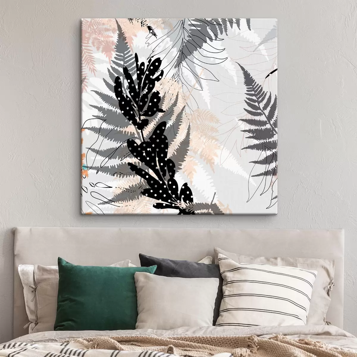 Schilderij natuurprint, decoratief gebladerte, jungle mix, varenvormen, neutraal palet, bladkunst Art. s45104