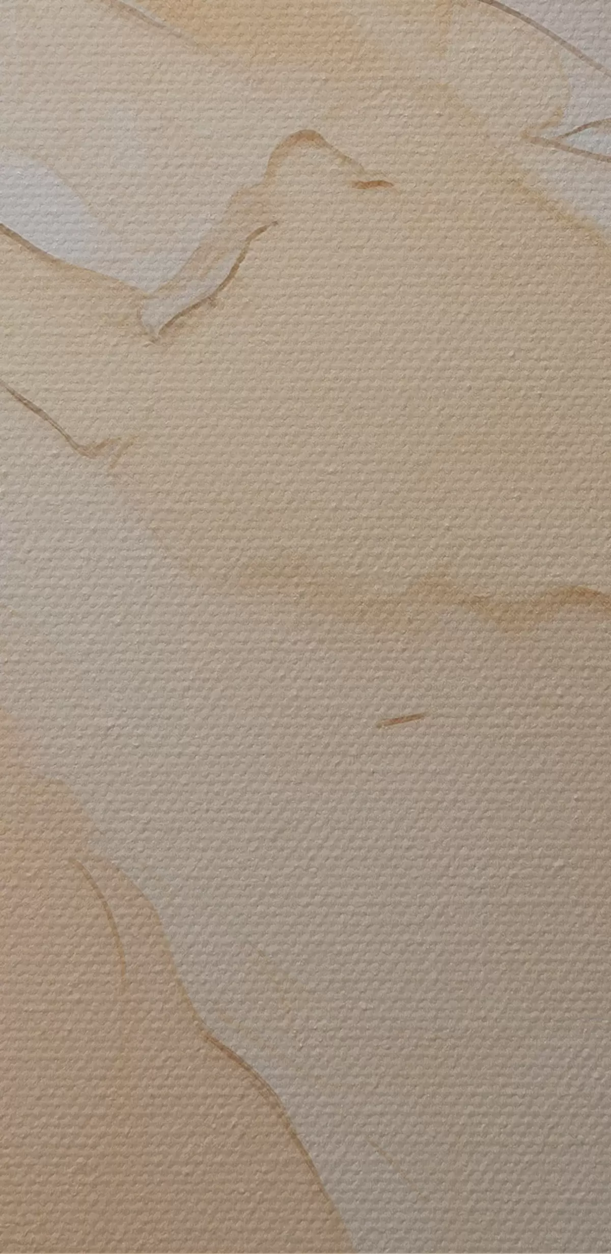 De fijne weving van draden op dit doek lijkt op het oppervlak van professionele schildersdoeken.