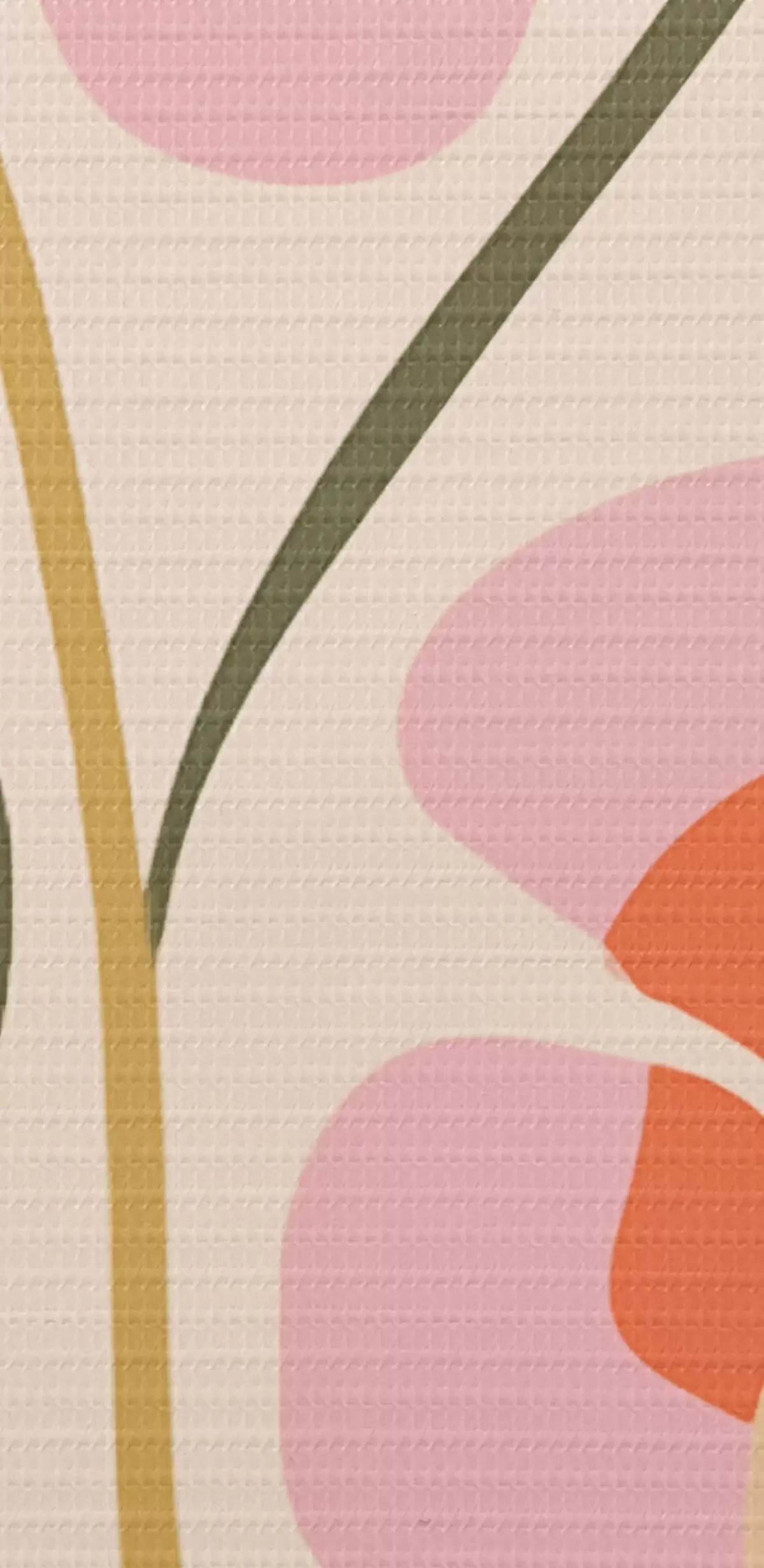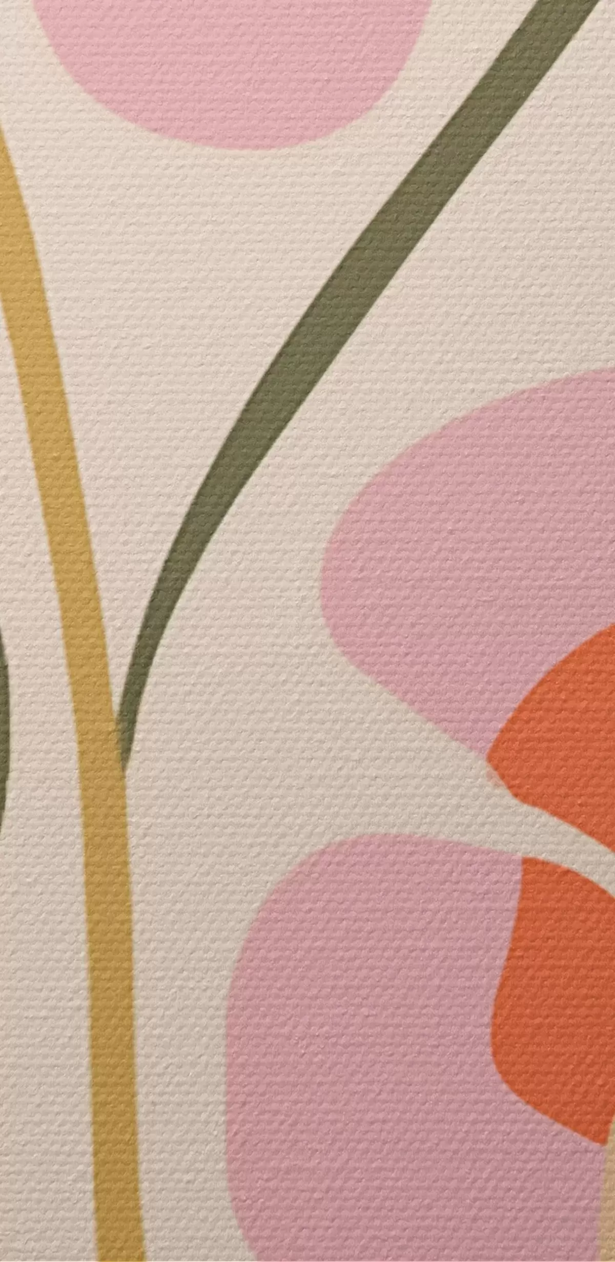 Schilderij Gestileerde roze en oranje bloemen met groene bladeren Art. s45140