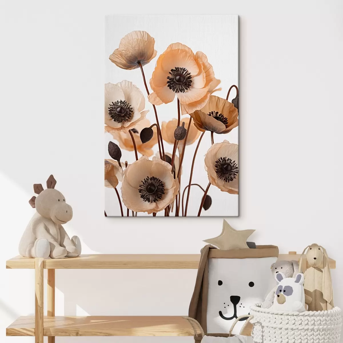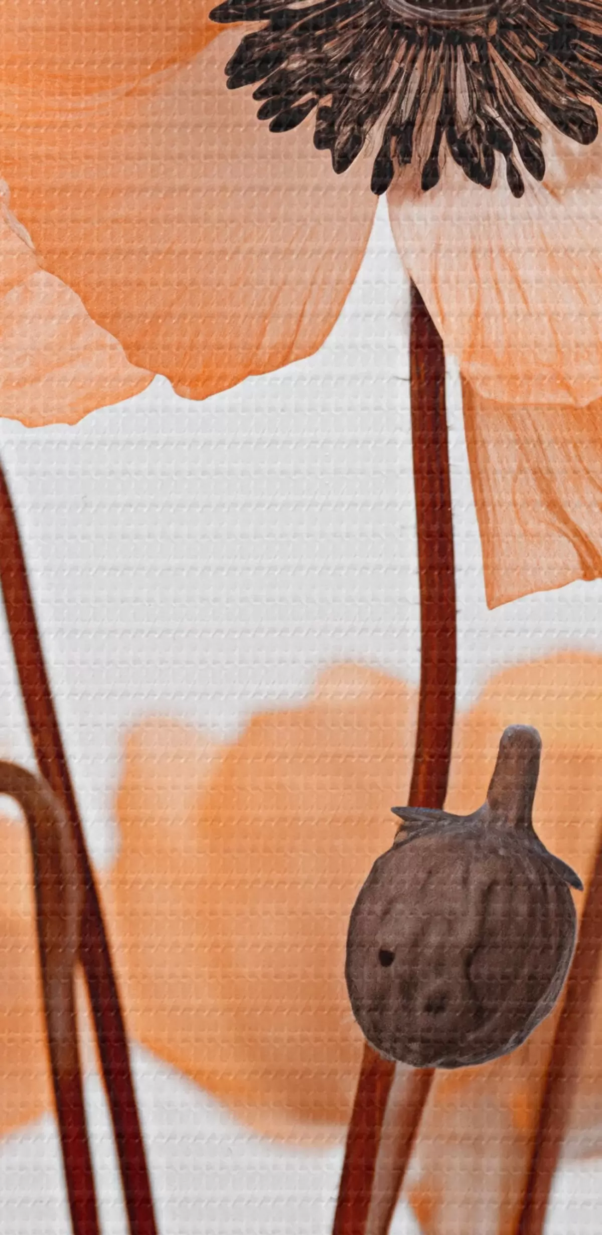 Schilderij Oranje klaprozen, gedroogde bloemen tegen een lichte achtergrond, zachte verlichting, delicate bloemblaadjes, bloemstuk Art. s45168