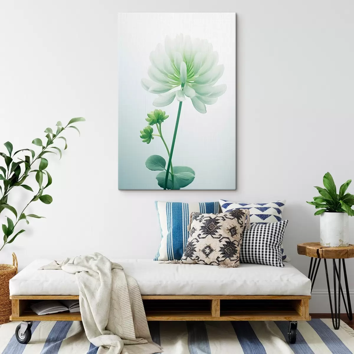 Schilderijen Witte klaver bloem met groene stengel en bladeren, zachte verlichting, schone achtergrond, minimalistische compositie, botanisch s45171