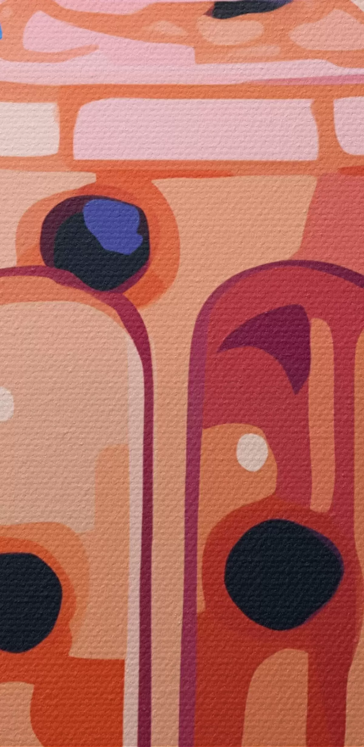 Het schilderij kan direct na ontvangst worden opgehangen. Het schilderij wordt opgespannen op een 2 cm breed houten spieraam.