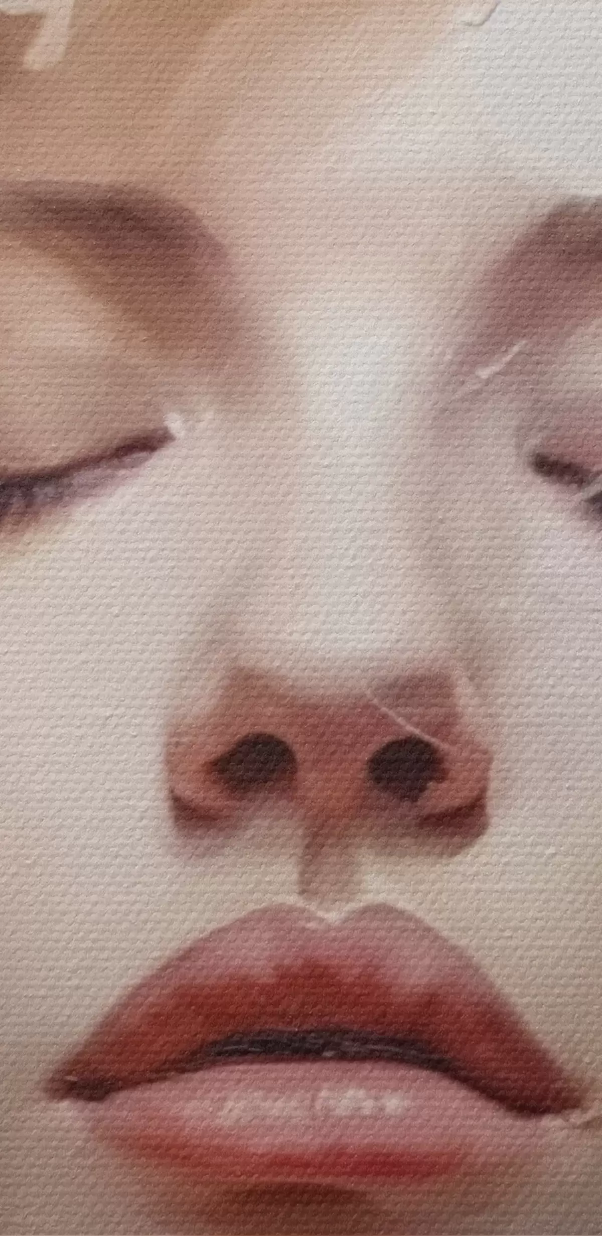 De fijne weving van draden op dit doek lijkt op het oppervlak van professionele schildersdoeken.