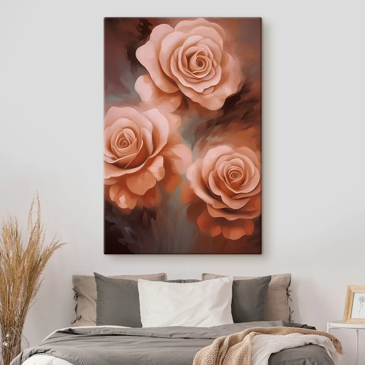 Schilderijen Drie roze rozen op wazige achtergrond s45222
