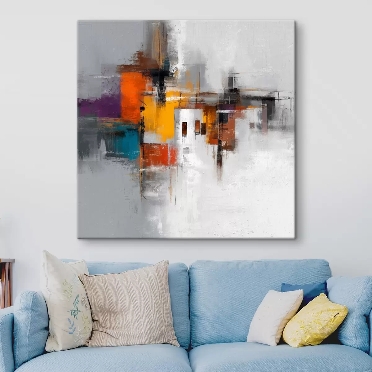Het schilderij kan direct na ontvangst worden opgehangen. Het schilderij wordt opgespannen op een 2 cm breed houten spieraam.