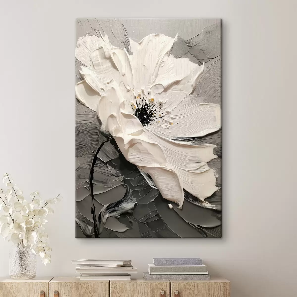 Schilderij Elegante bloei: modern schilderij met reliëfstructuur Art. s45246