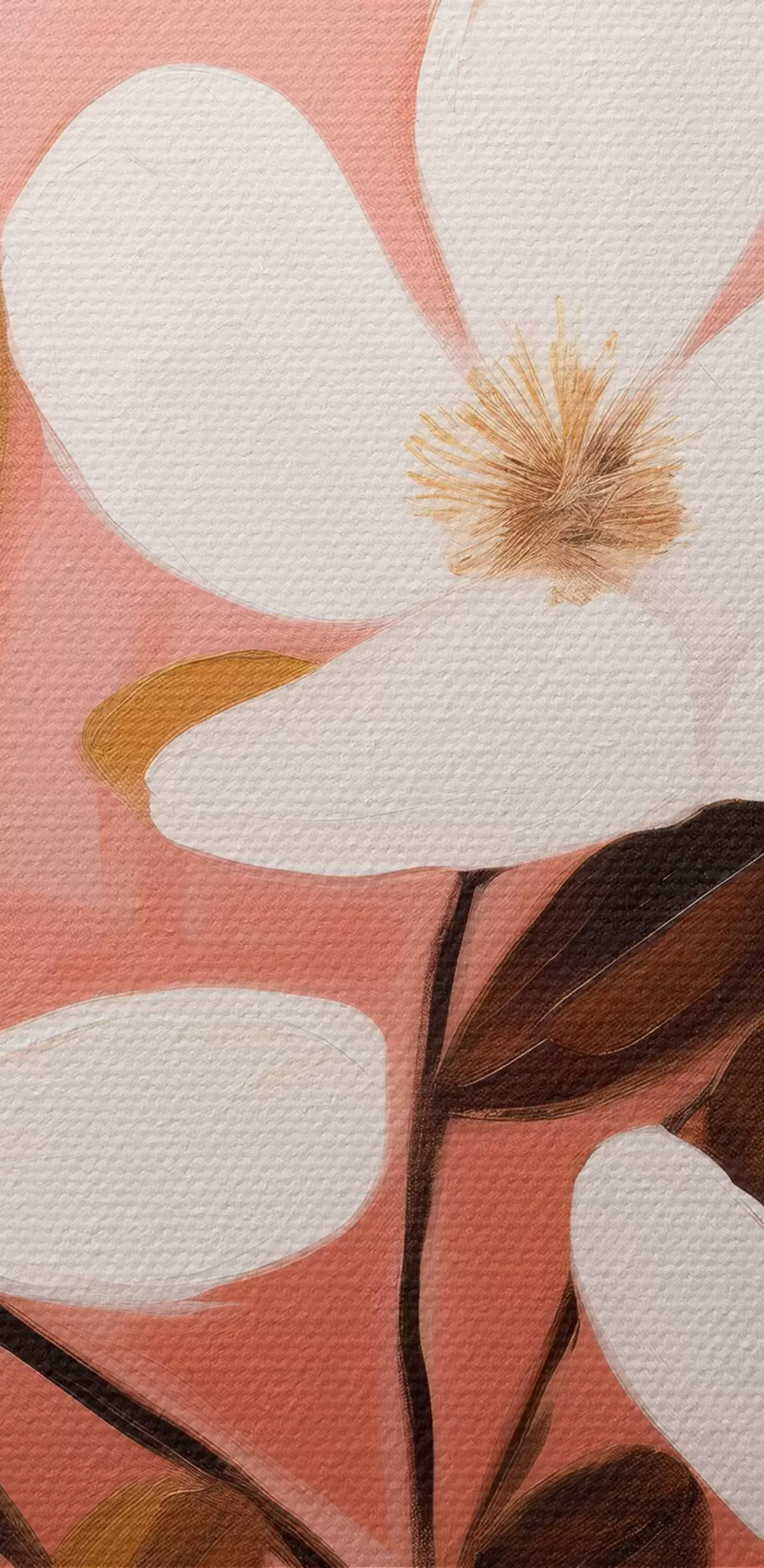 Schilderij Witte magnolia's in een witte vaas: minimalistisch bloemenschilderij Art. s45254