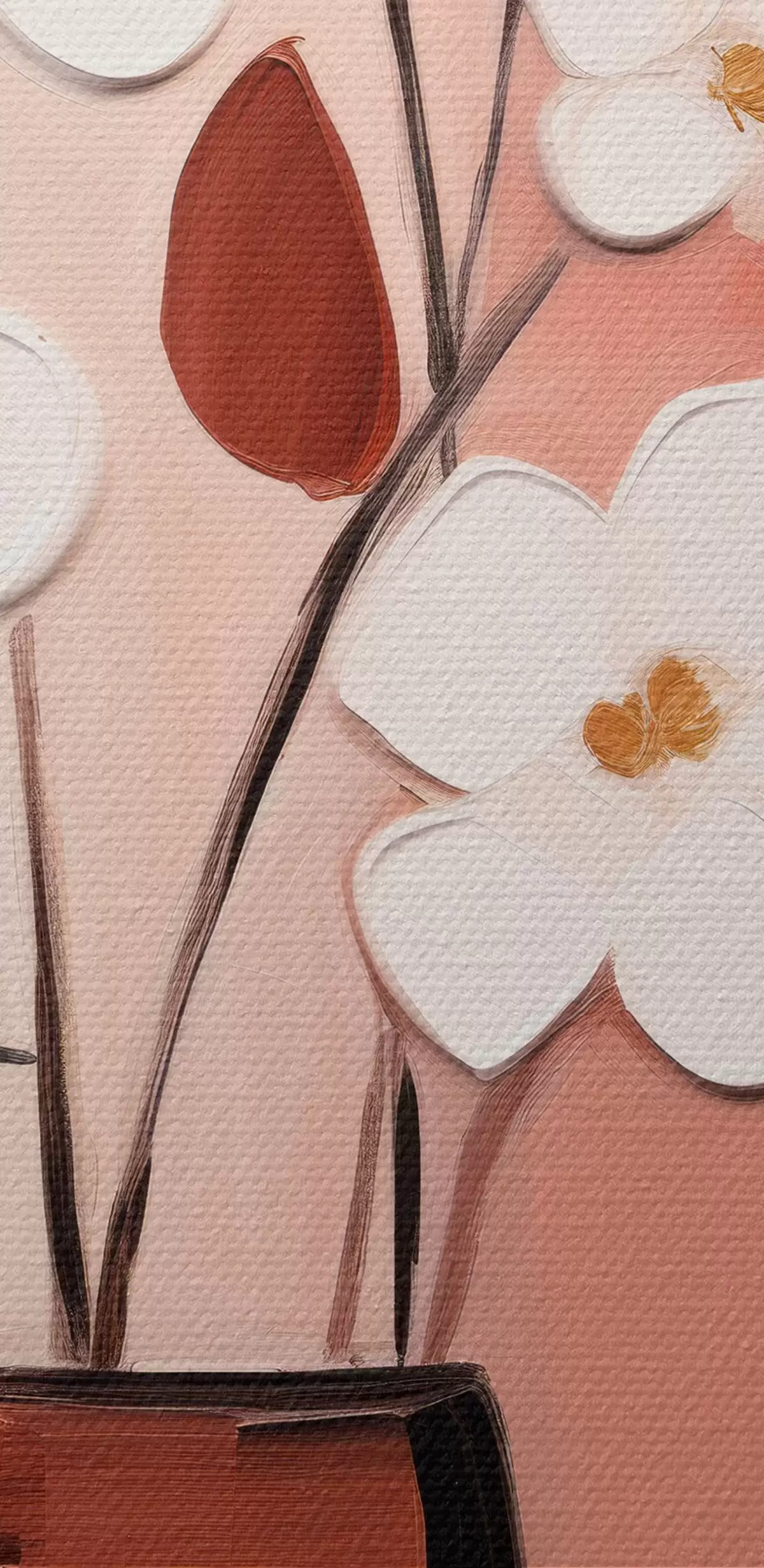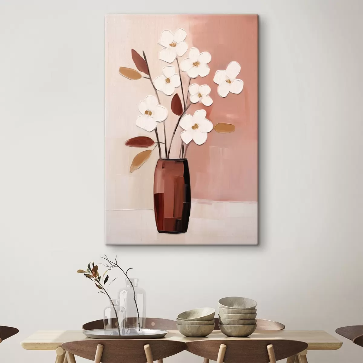 Schilderij Witte bloemen in een donkere vaas: modern bloemenschilderij Art. s45255