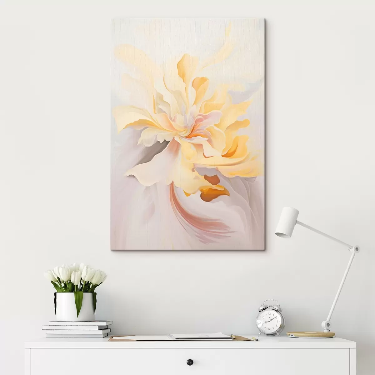 Schilderijen Delicate bloem: abstract schilderij in pasteltinten s45256
