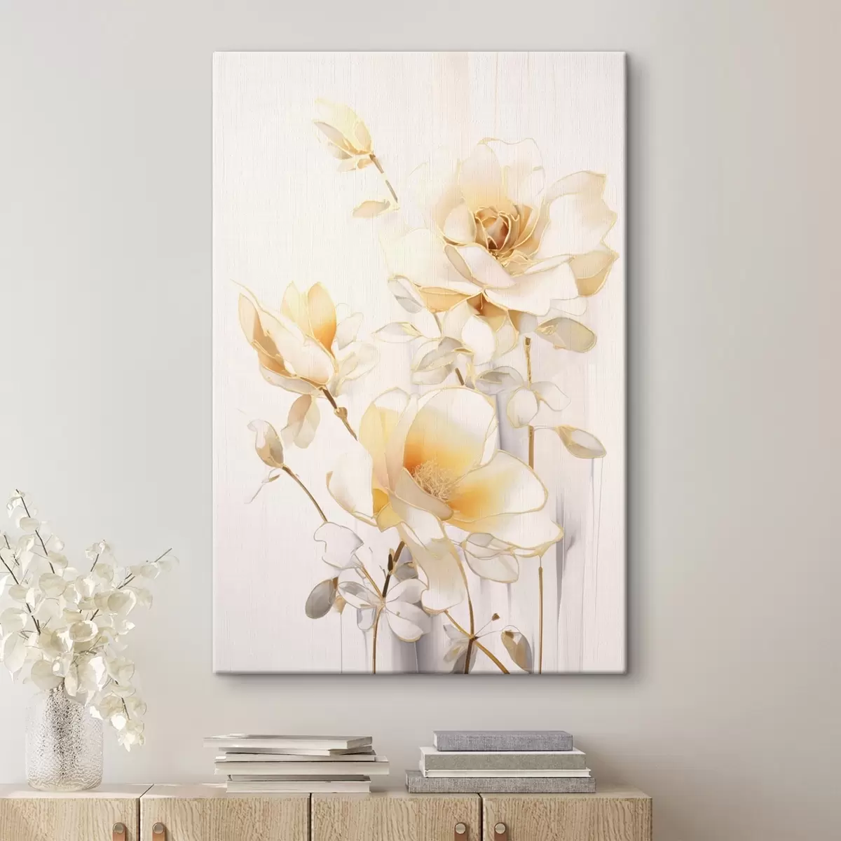 Schilderijen Lichte bloemen: moderne kunst met zachte tinten s45258