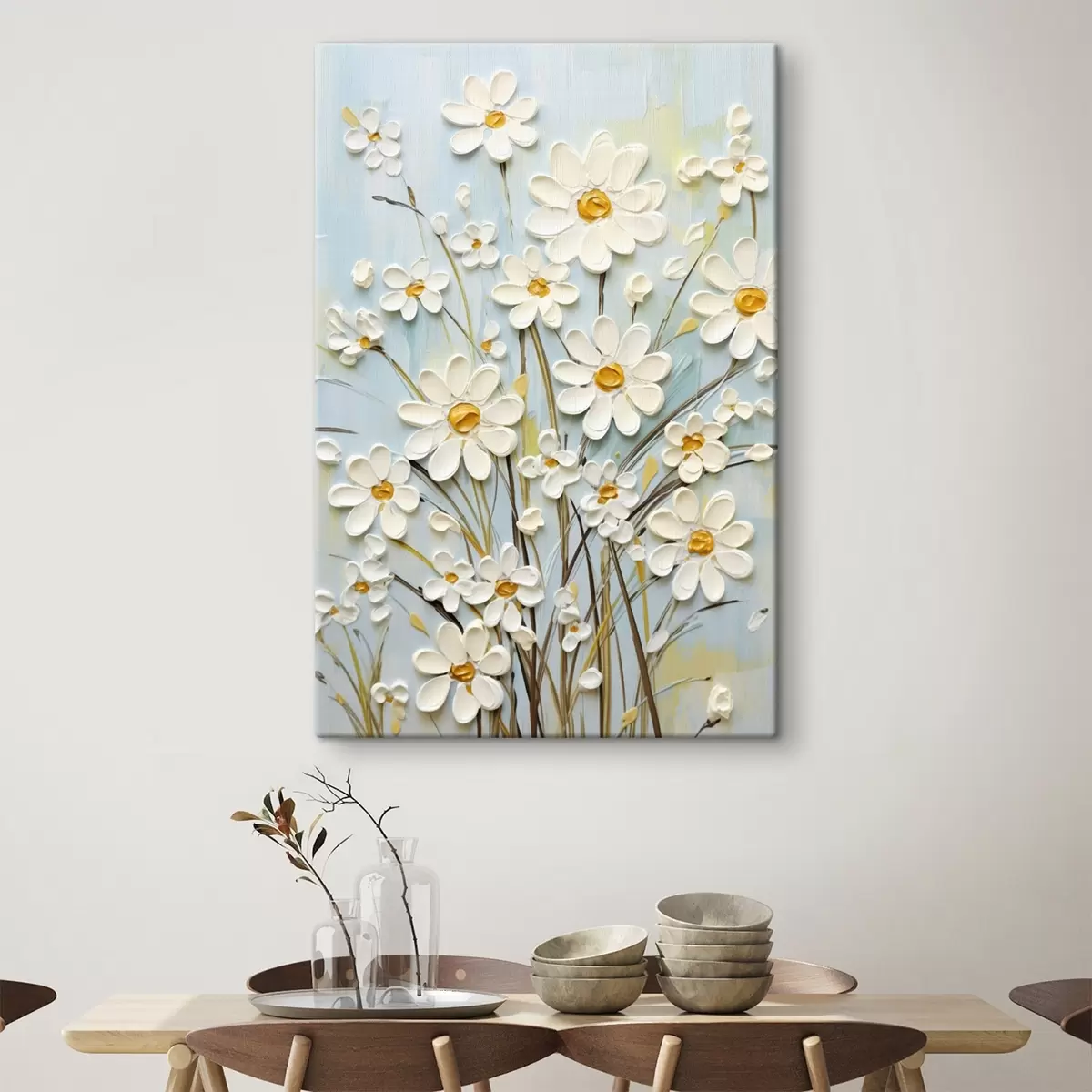 Schilderij Gestructureerde madeliefjes: impasto kunst met expressieve penseelstreken Art. s45266