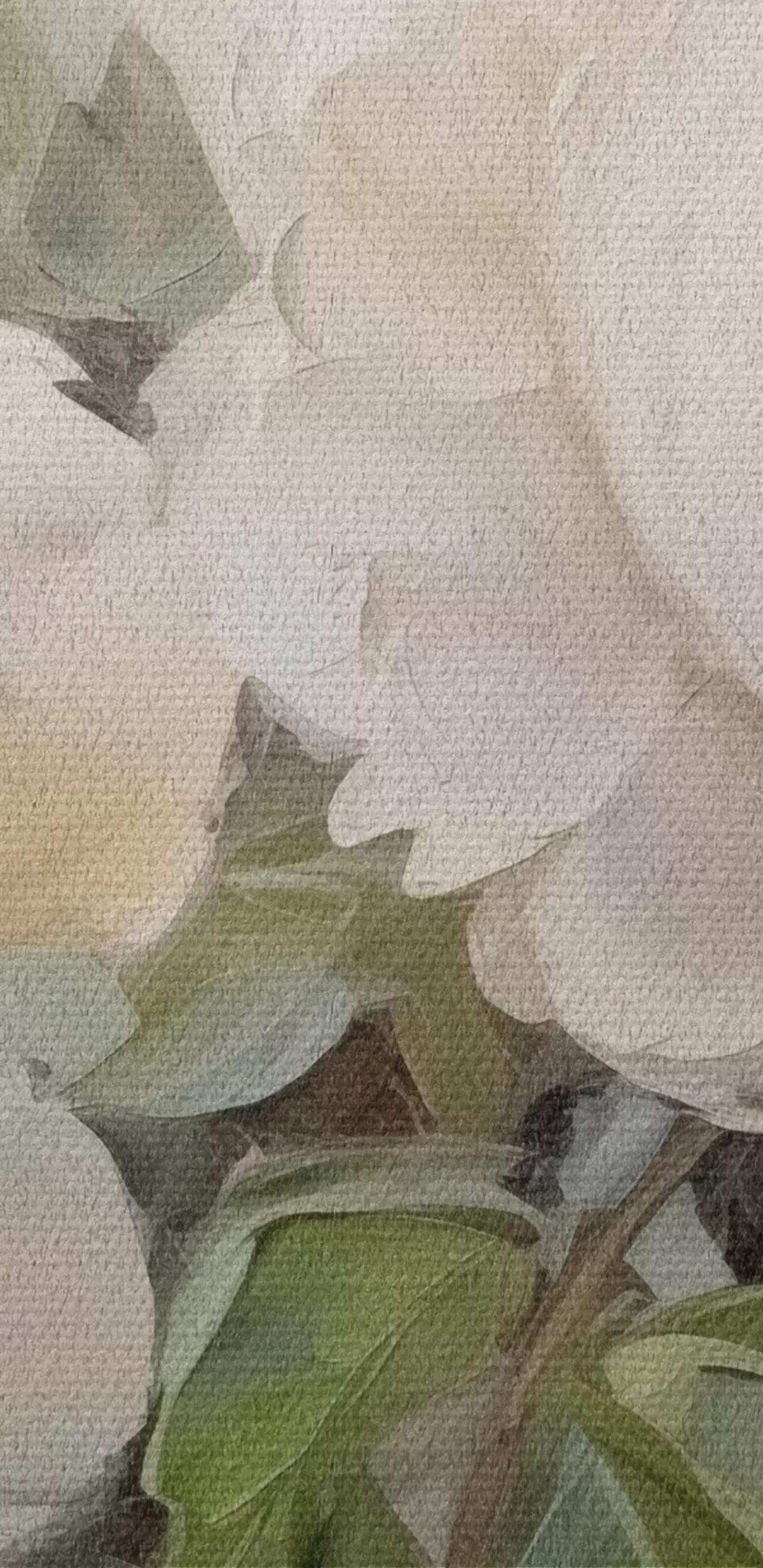 De fijne weving van draden op dit doek lijkt op het oppervlak van professionele schildersdoeken.