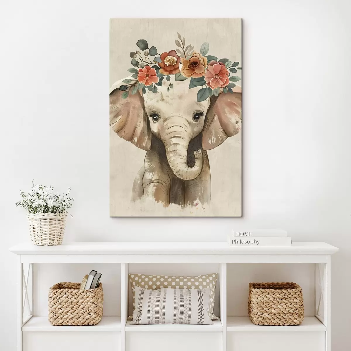 Schilderij Schattige aquarel olifant met bloemen Art. s45330