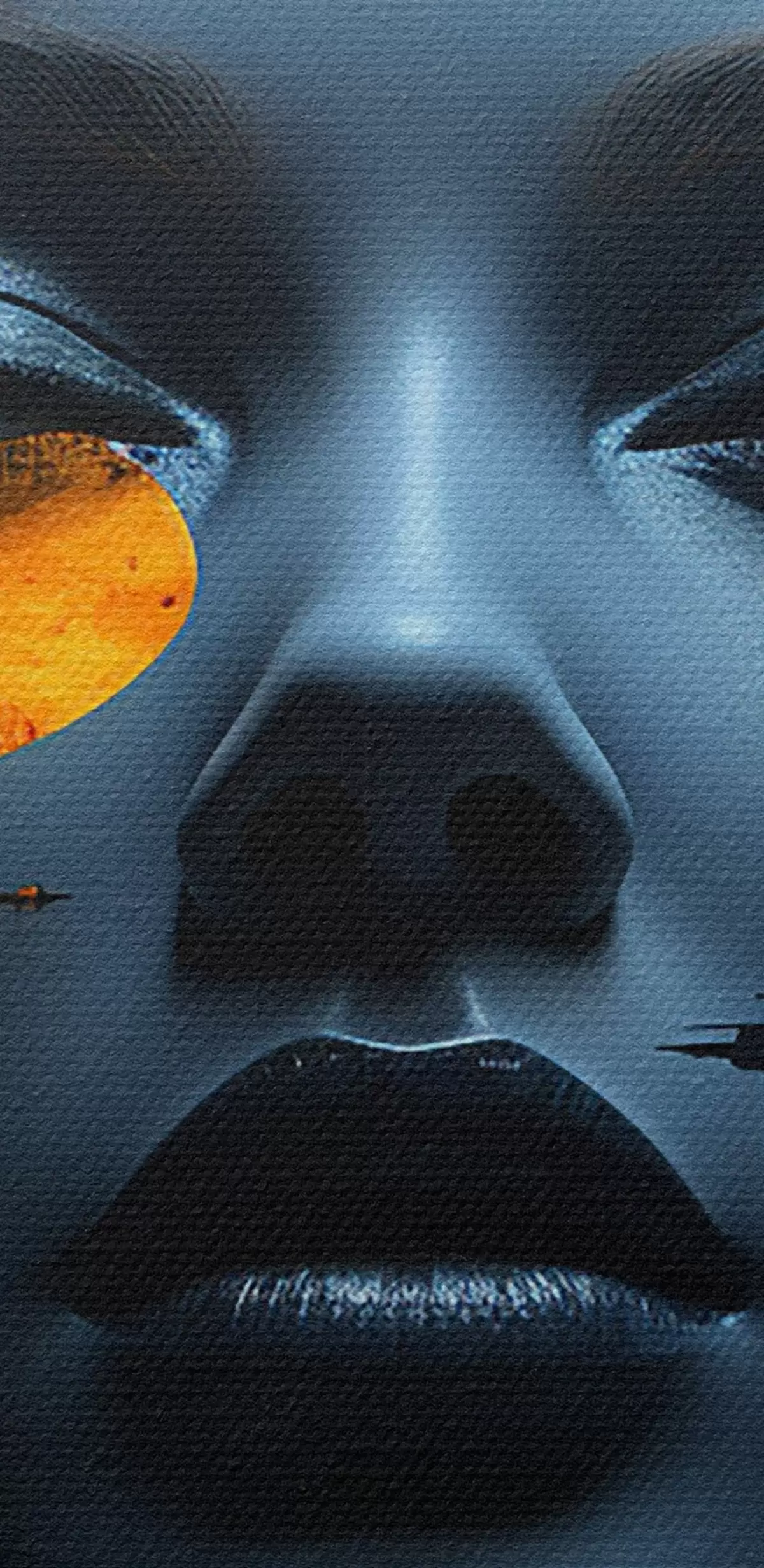 Schilderijen Mensen, meisjesgezicht op een stadsachtergrond, abstract s45341