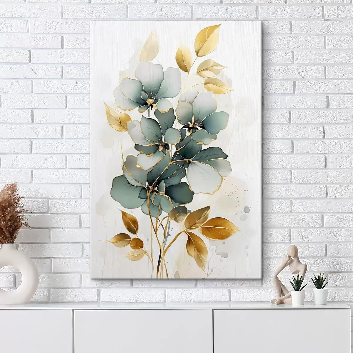 Schilderij Abstracte tak met bloemen en bladeren Art. s45367