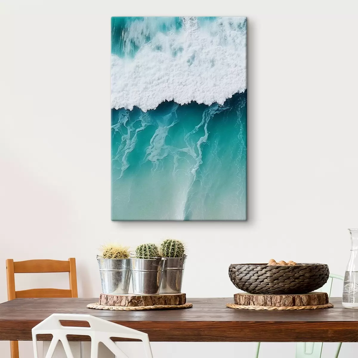 Je kunt het schilderij ophangen aan schroeven. Hiervoor leveren we bevestigingen bij onze foto's, zodat je de foto gemakkelijk kunt ophangen.