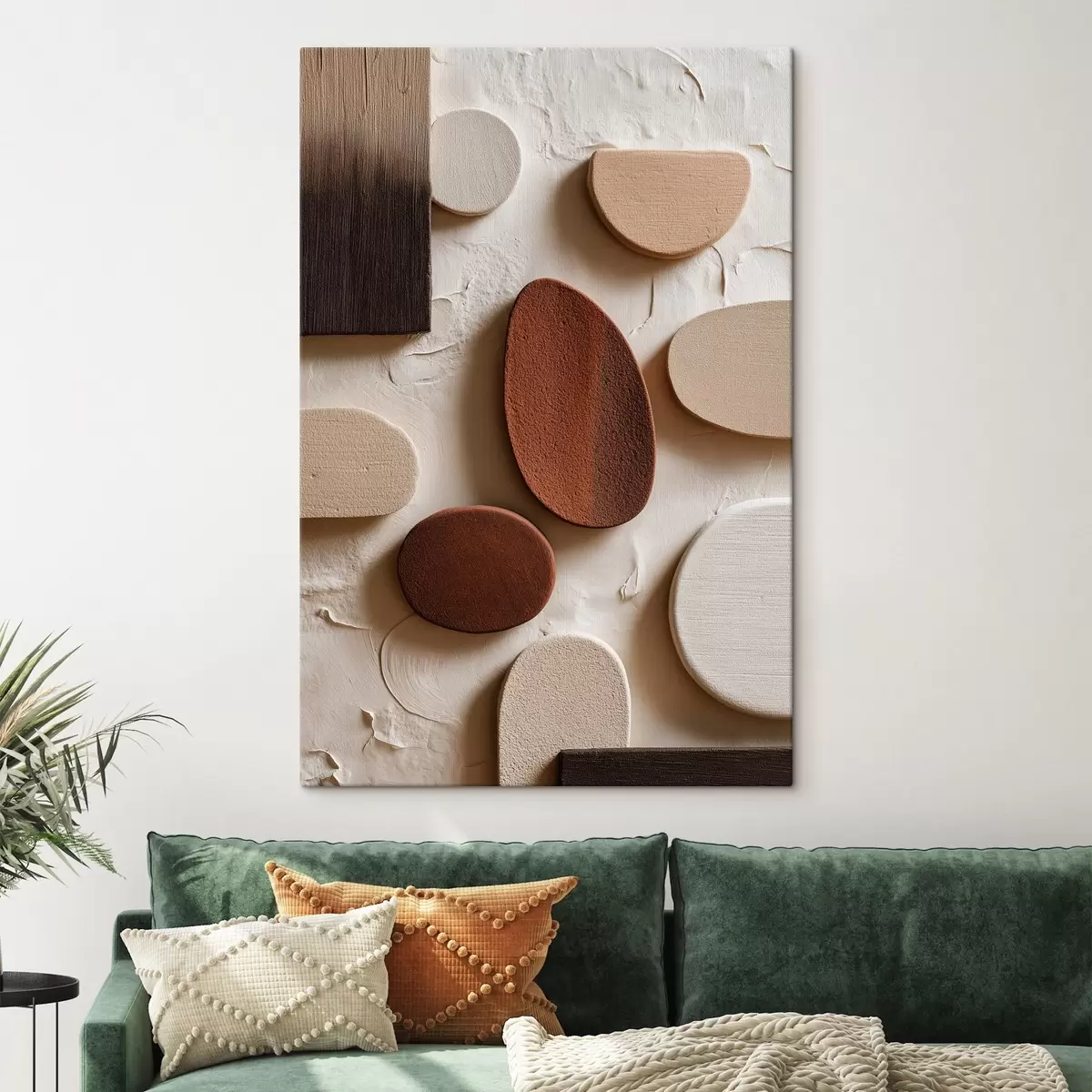Schilderij Abstracte compositie met driedimensionale geometrische vormen op een reliëfachtergrond Art. s45409