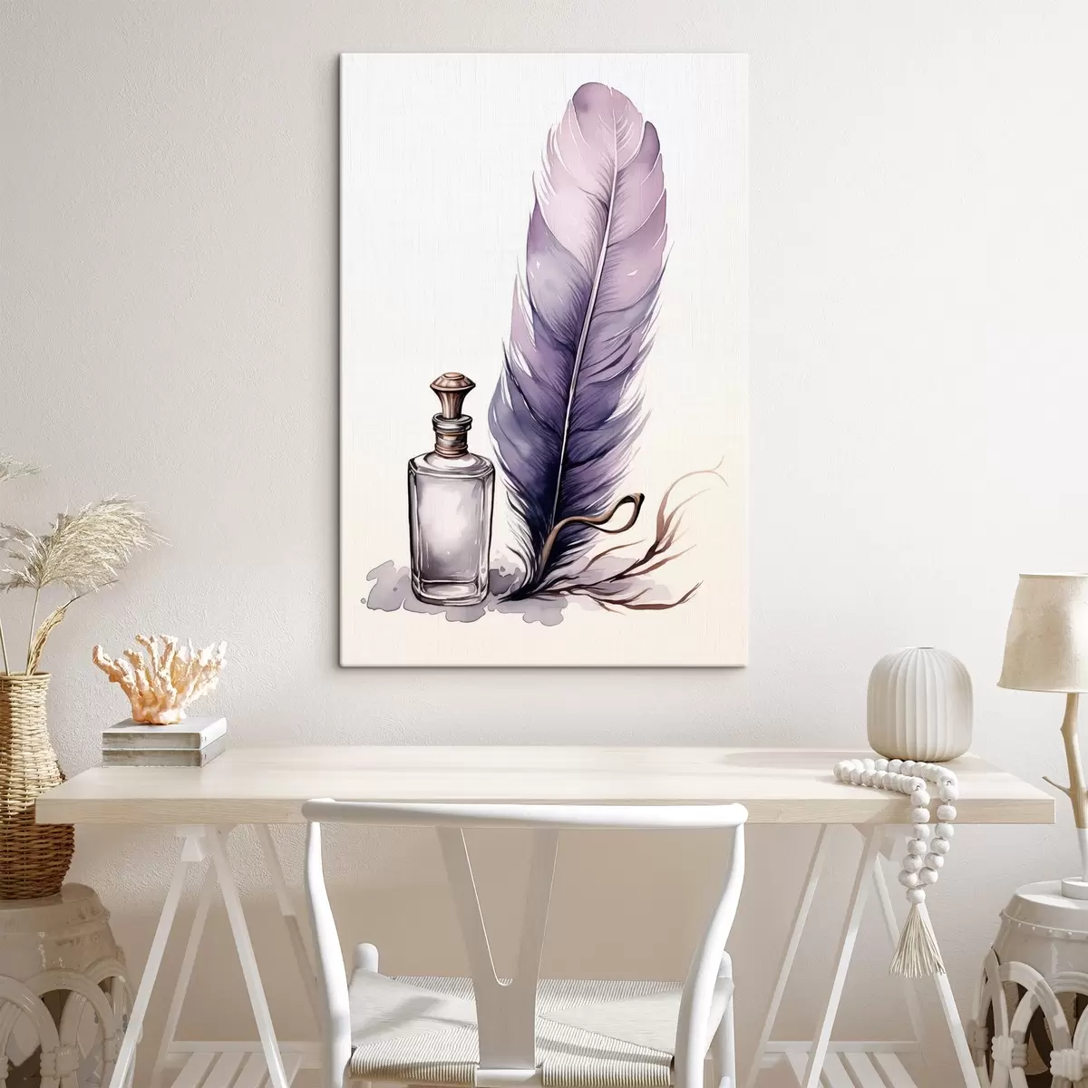Schilderij Aquarel illustratie van een veer en glazen inktfles Art. s45410