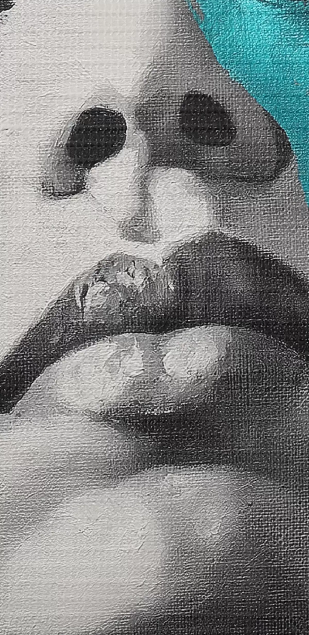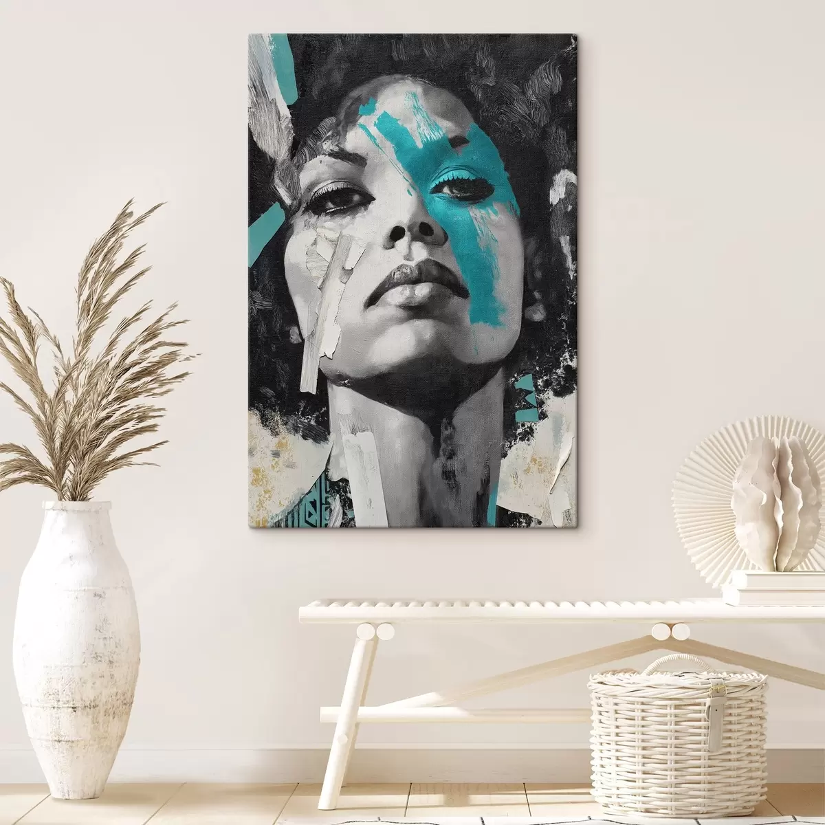 Schilderij Gemengde-media-portret met fragmenten van kleurstreken en texturen Art. s45416