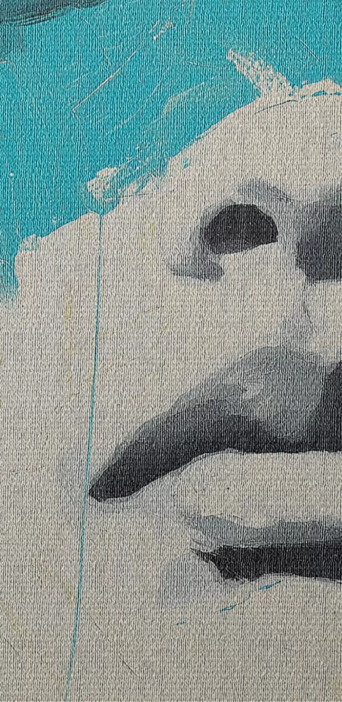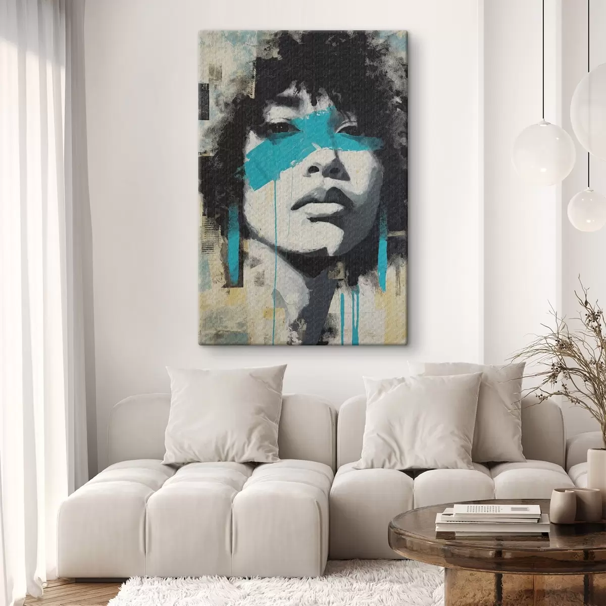 Schilderij Gemengde-media-portret met fragmenten van kleurstreken en texturen Art. s45417