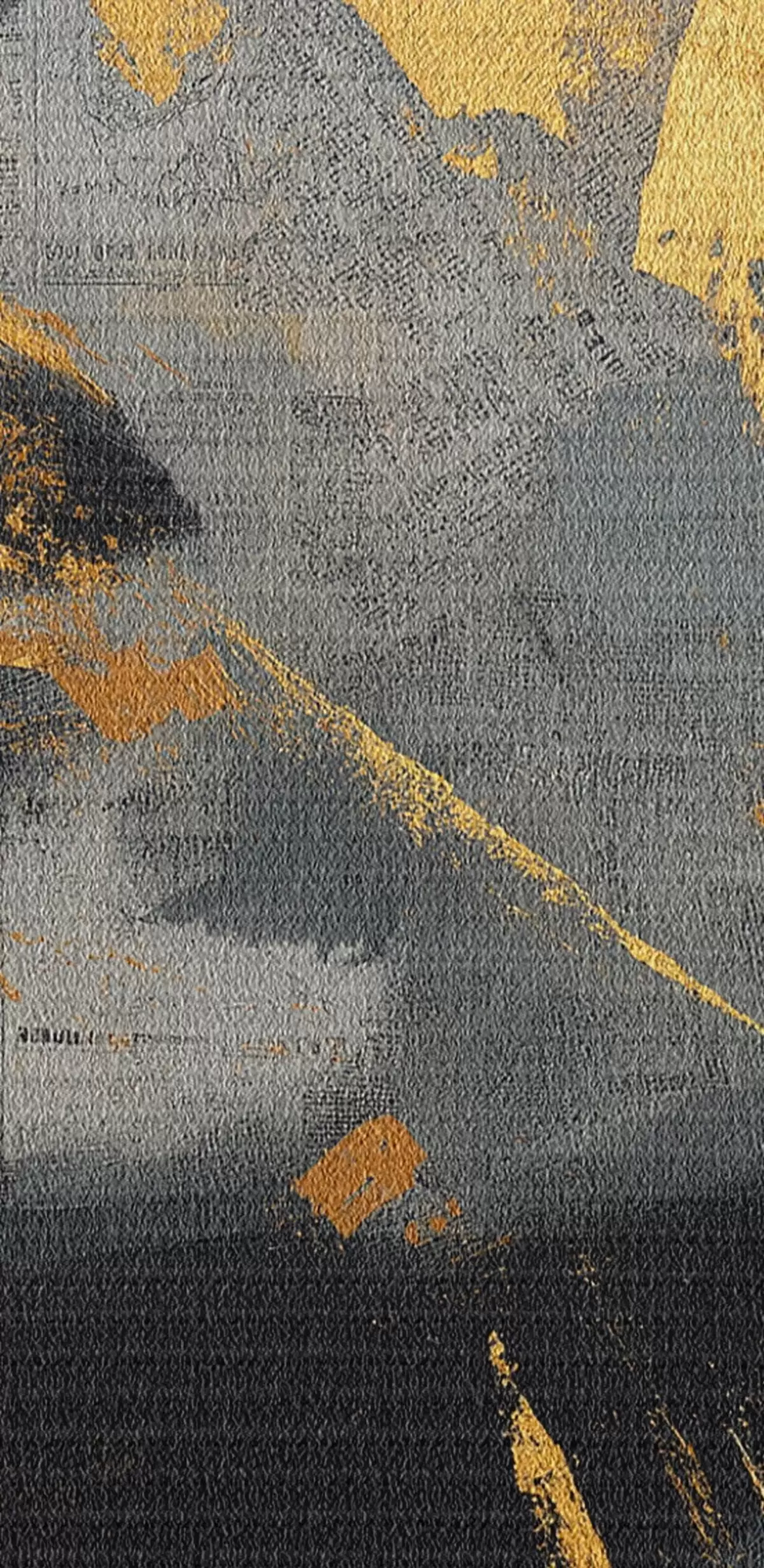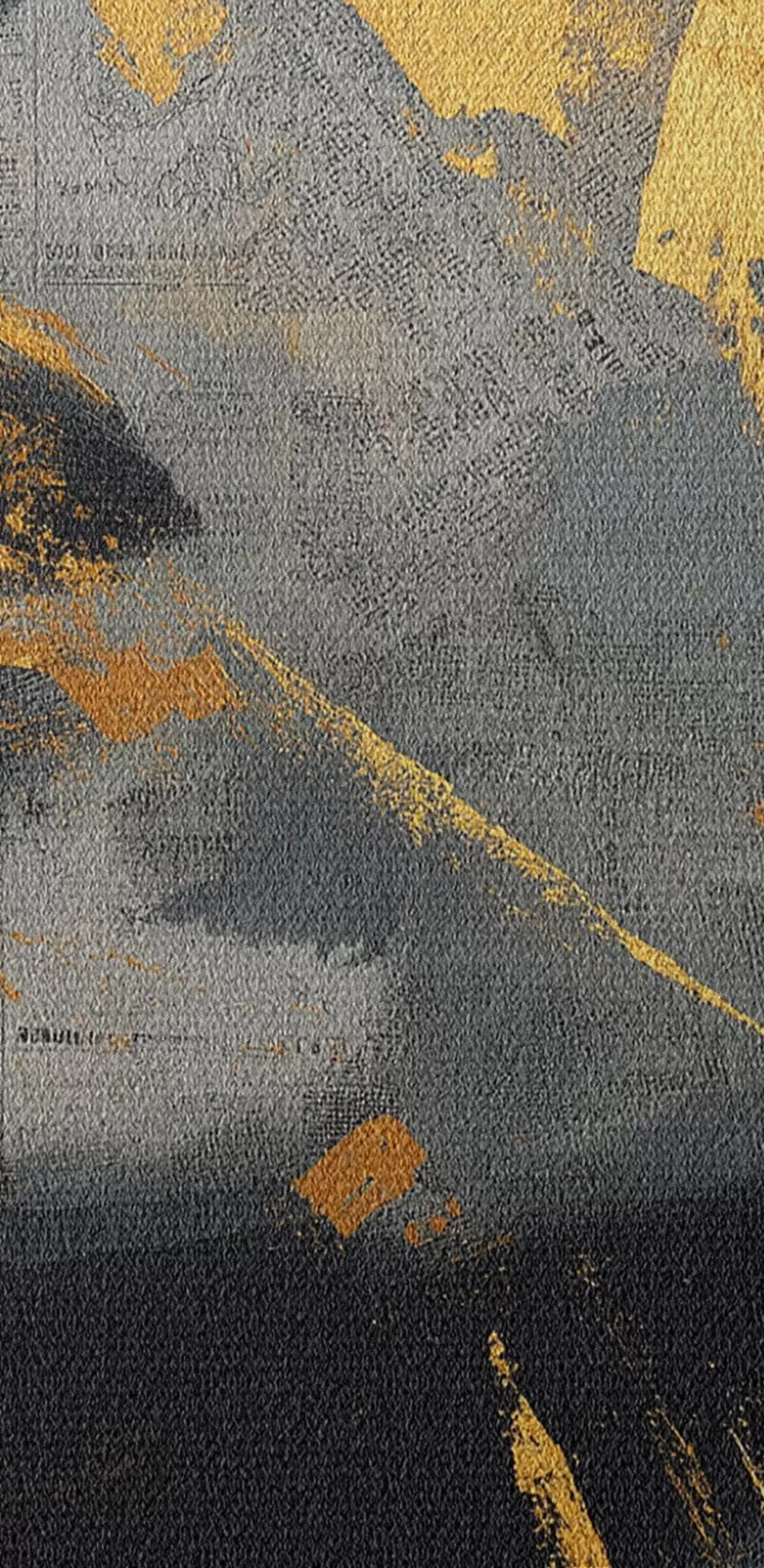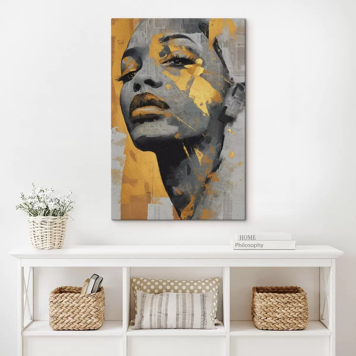 Schilderij Gemengde-media-portret met krantenfragmenten en decoratieve penseelstreken Art. s45419