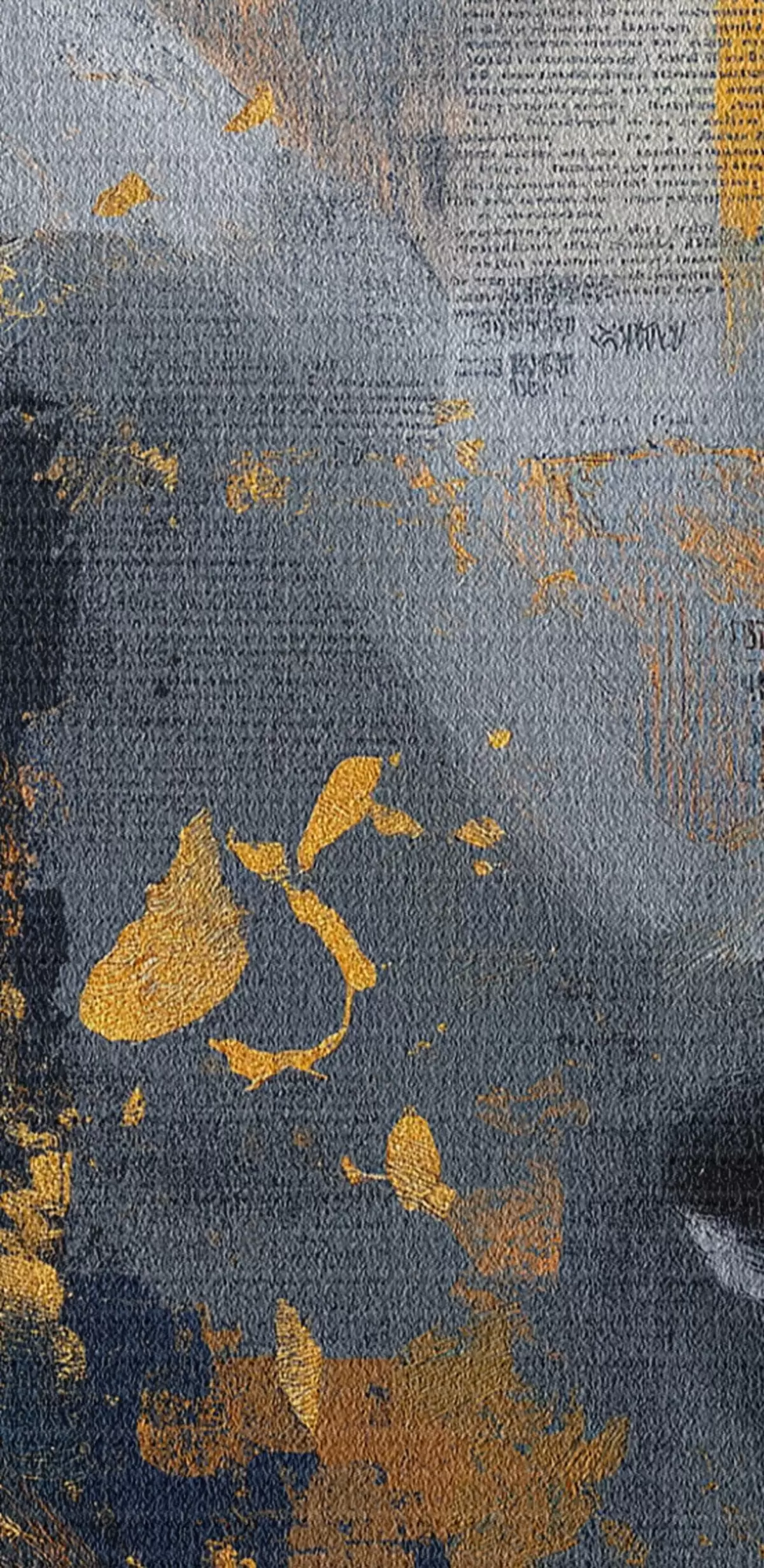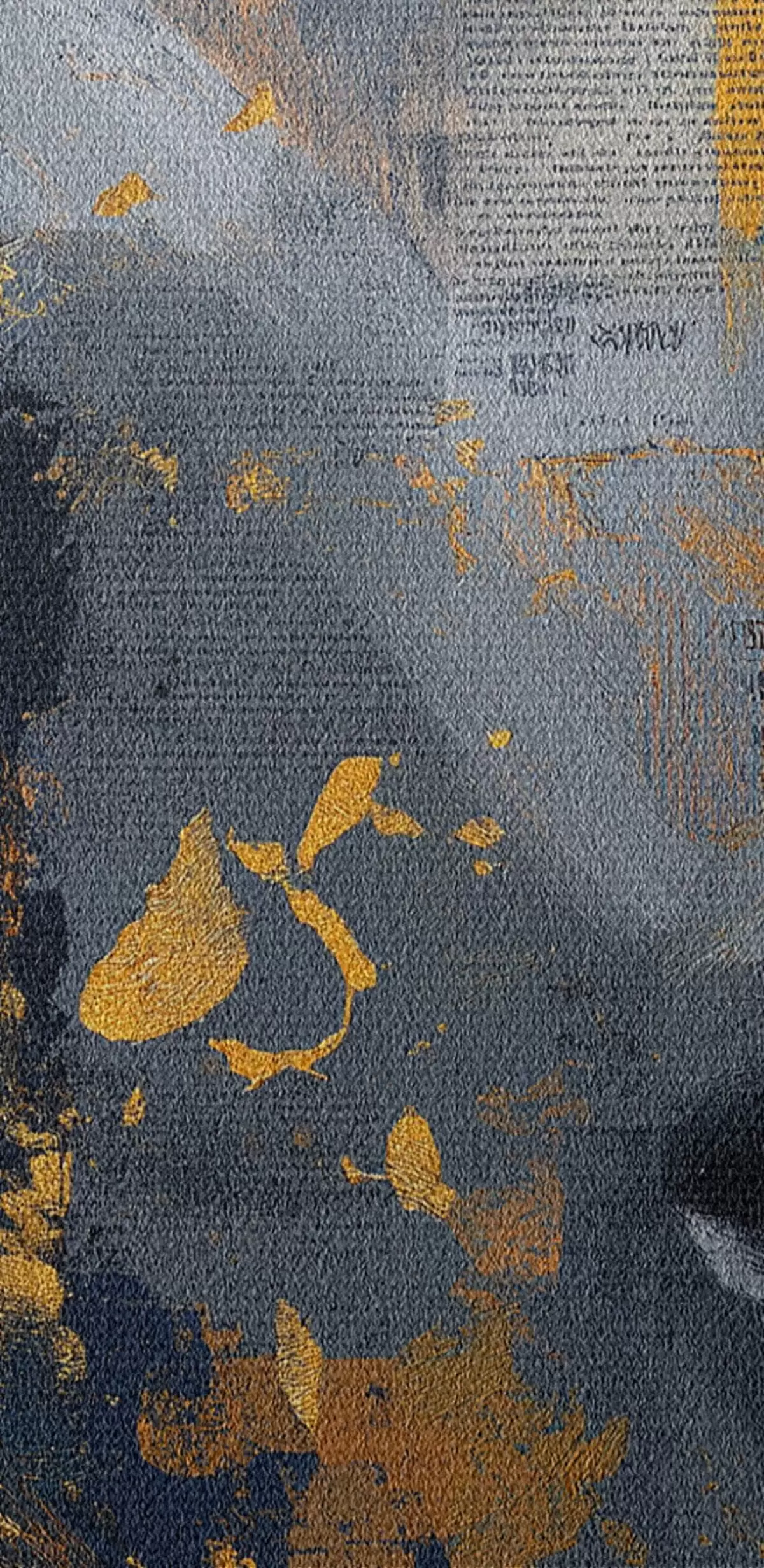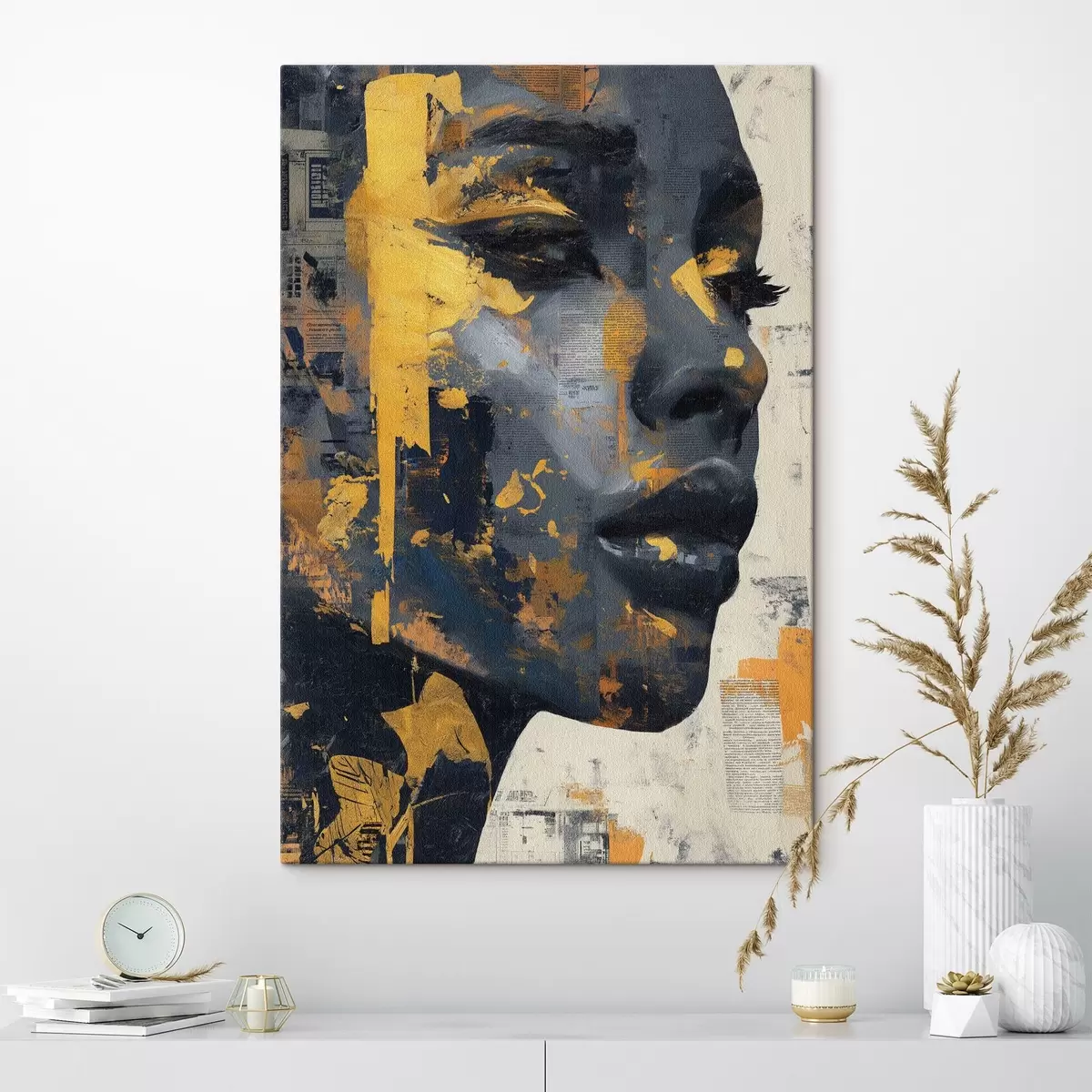 Schilderij Gemengde-media-portret met krantenfragmenten en decoratieve penseelstreken Art. s45420