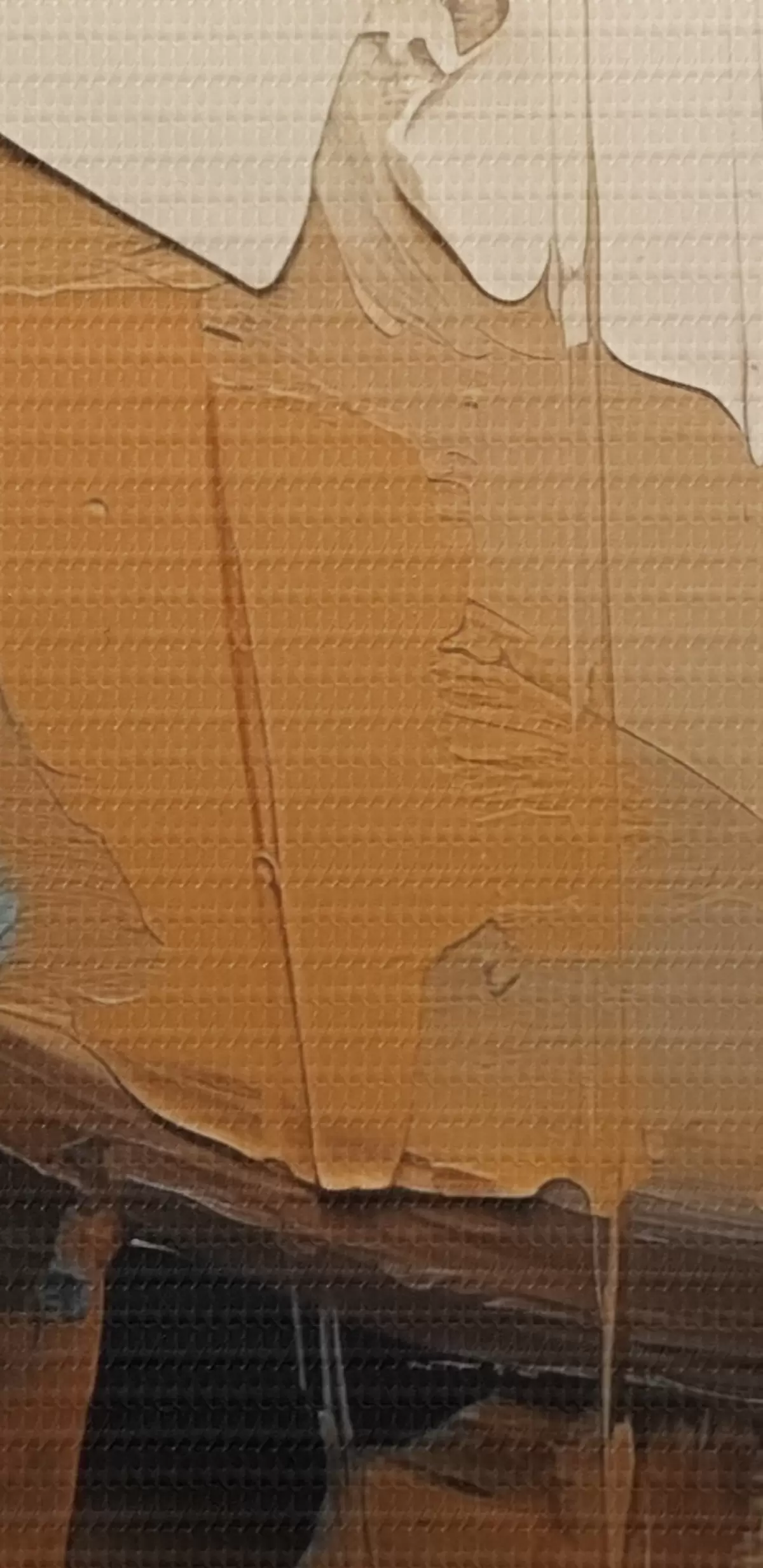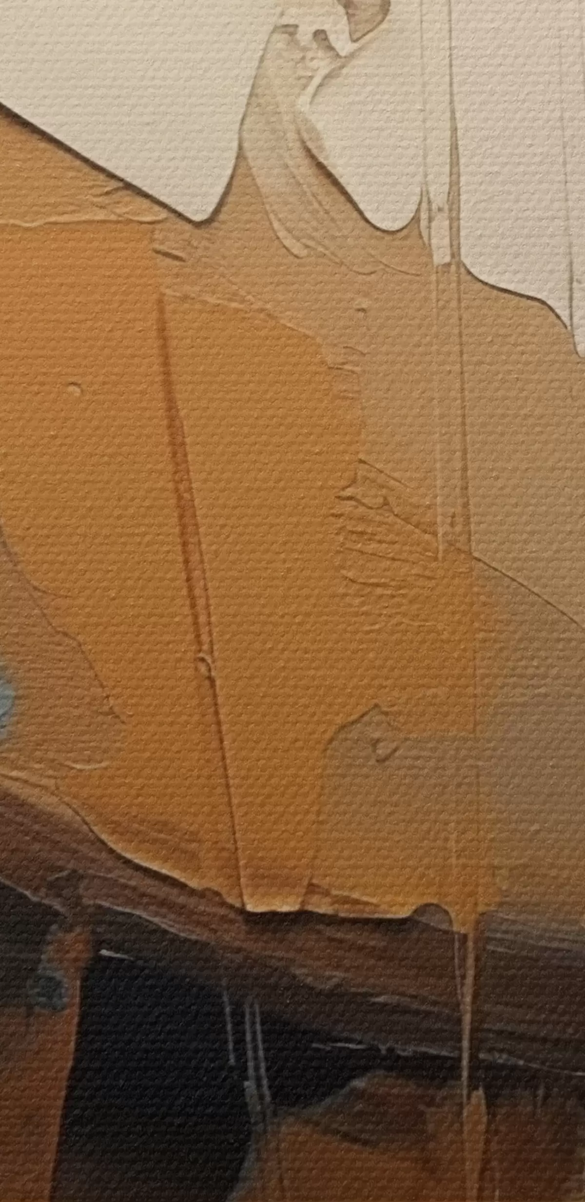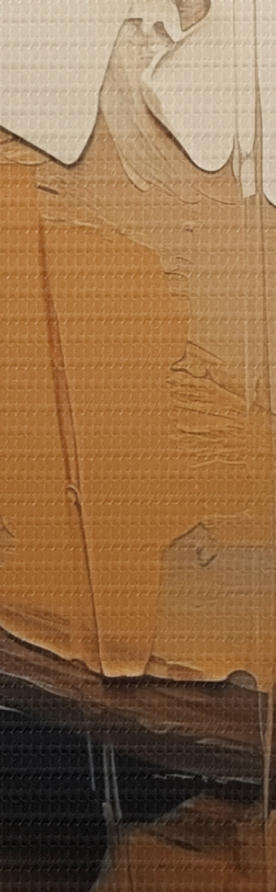 Het schilderij kan direct na ontvangst worden opgehangen. Het schilderij wordt opgespannen op een 2 cm breed houten spieraam.