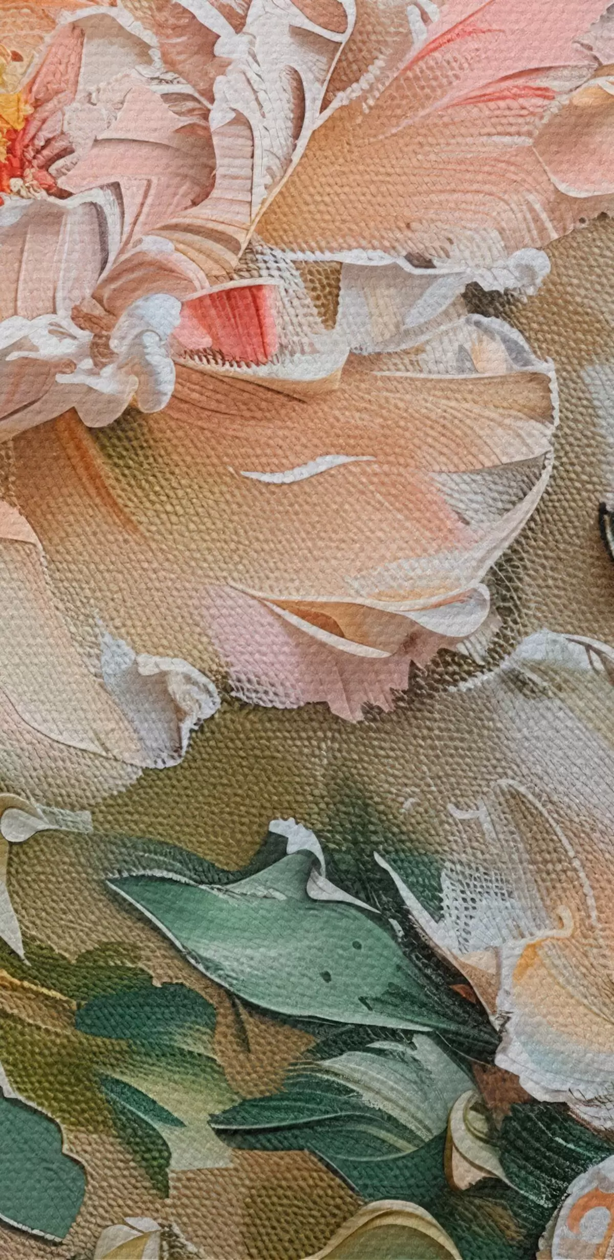 Het schilderij kan direct na ontvangst worden opgehangen. Het schilderij wordt opgespannen op een 2 cm breed houten spieraam.