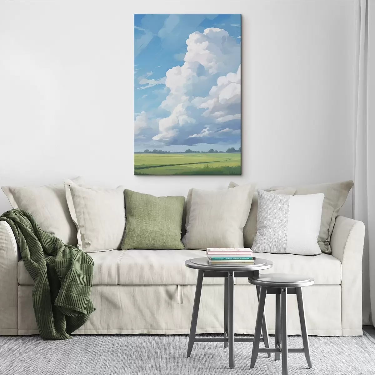 Schilderijen Veld tegen de lucht met enorme wolken s45453