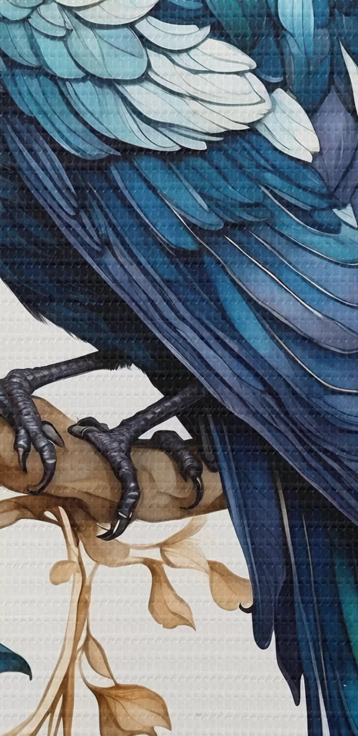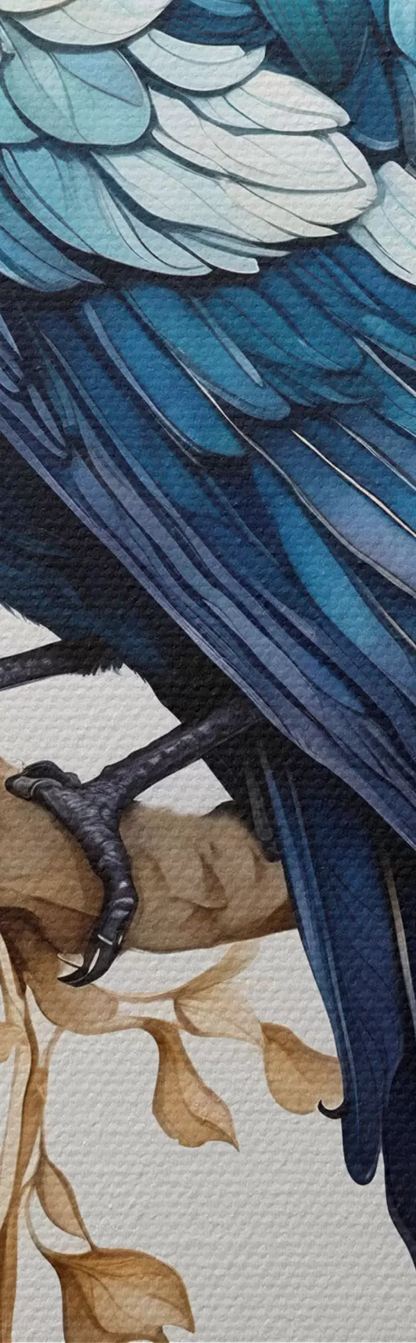 Schilderij Blauwe vogel op een tak met bladeren in aquarelstijl Art. s45483