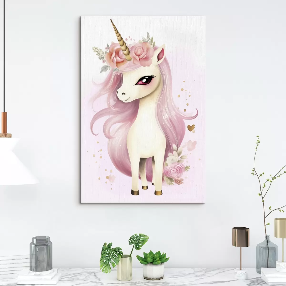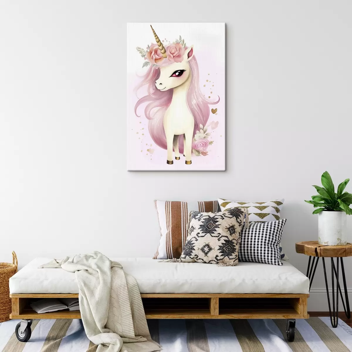 Schilderij Eenhoorn met roze manen en bloemenkrans Art. s45484