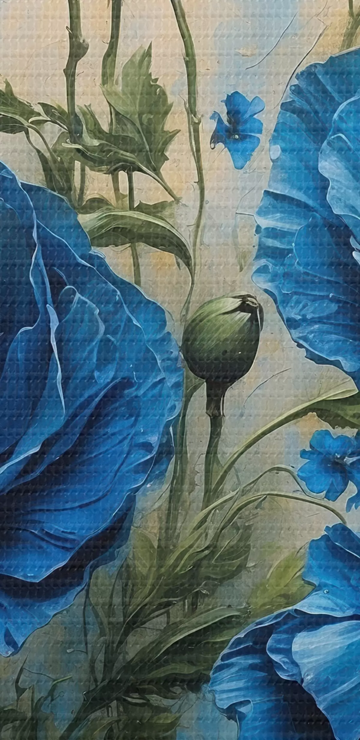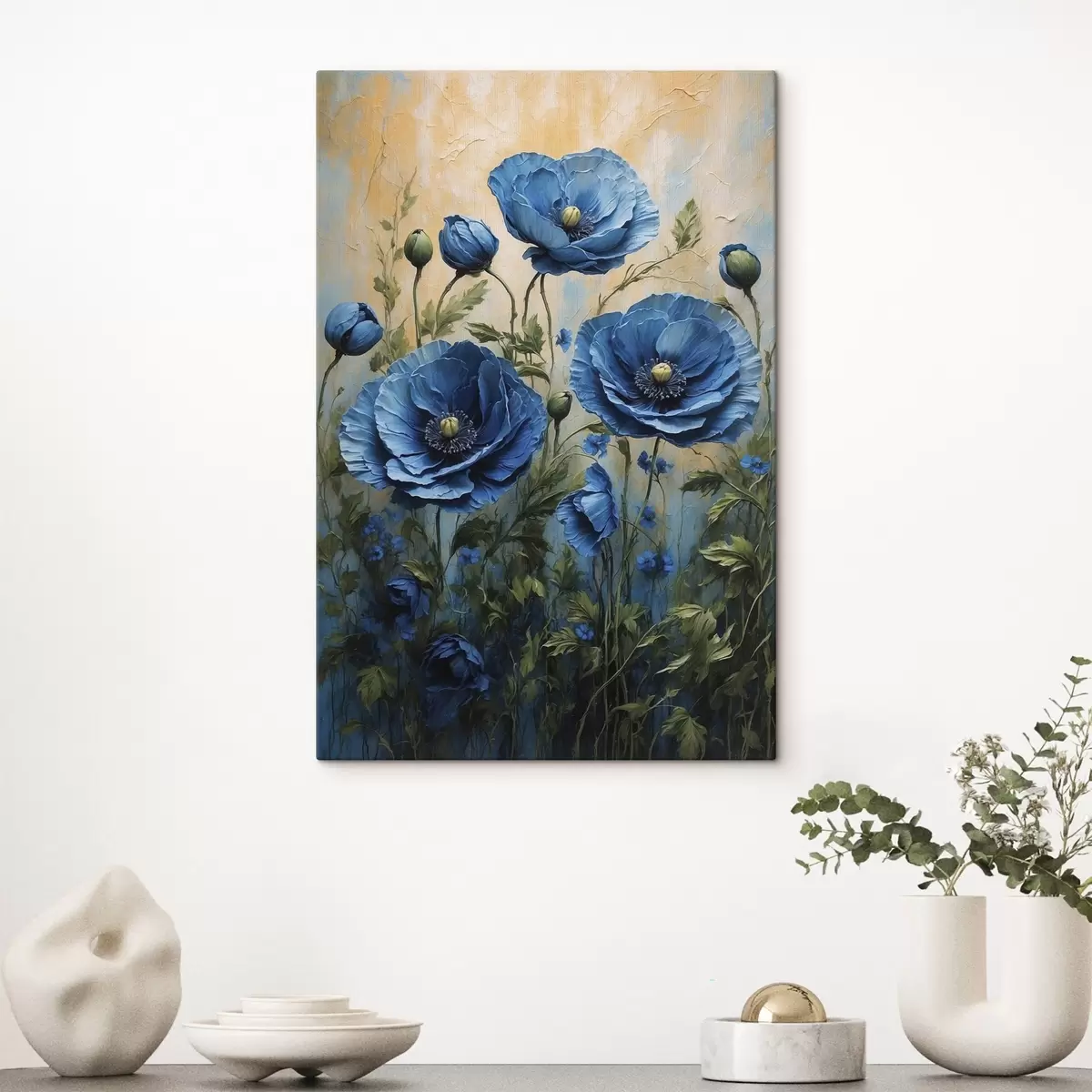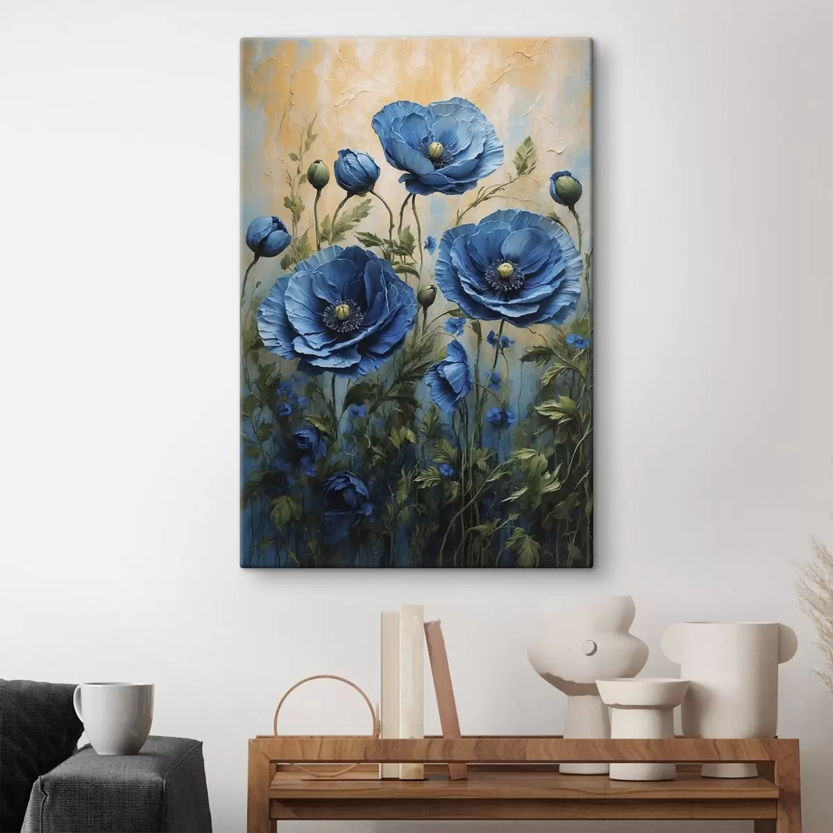 Schilderij Grote blauwe klaprozen met knoppen op een lichte achtergrond Art. s45488