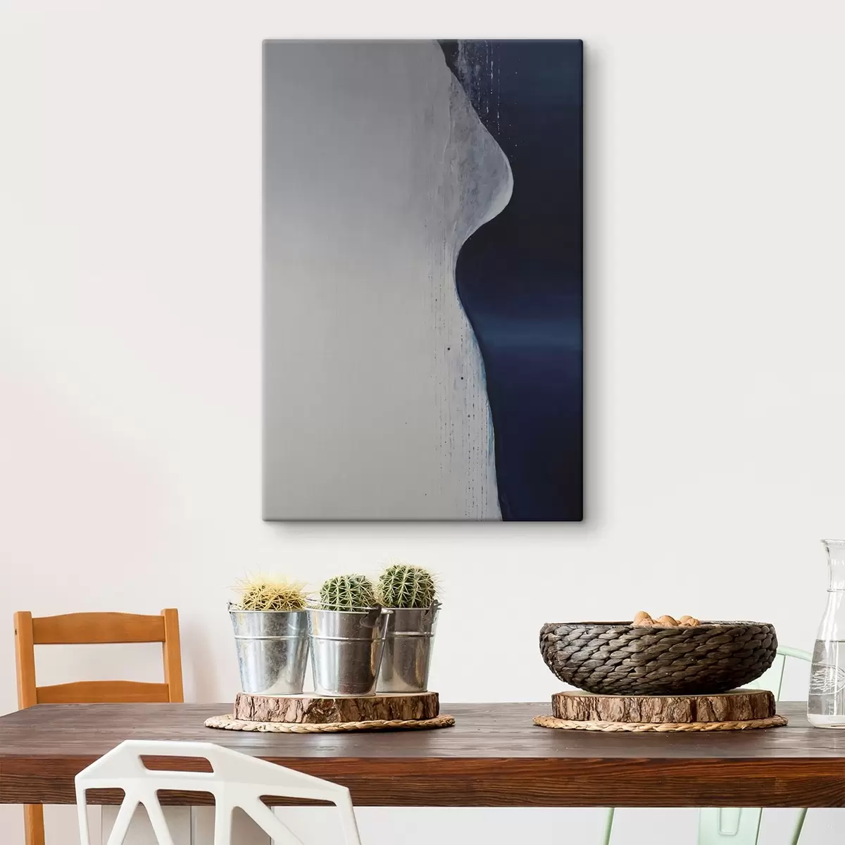 Schilderijen Abstract schilderij in witte, blauwe en donkerblauwe tinten s45493