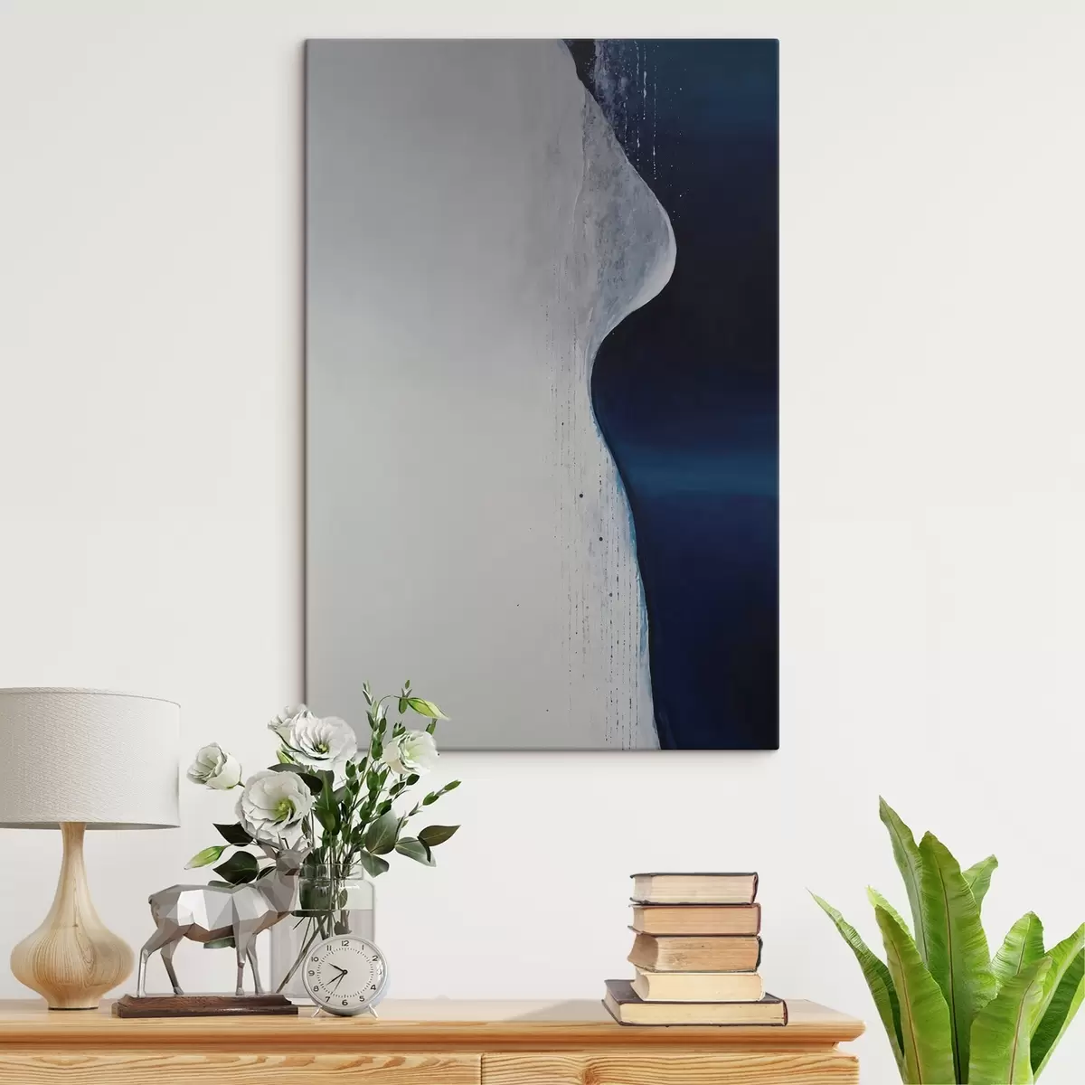Schilderij Abstract schilderij in witte, blauwe en donkerblauwe tinten Art. s45493