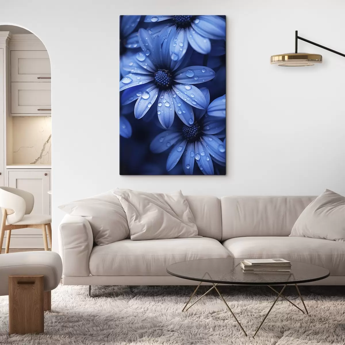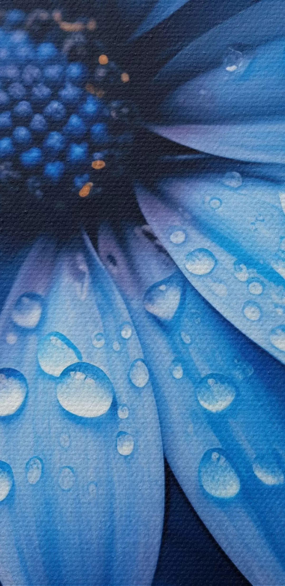 Schilderij Blauwe bloem met waterdruppels op de bloemblaadjes Art. s45499