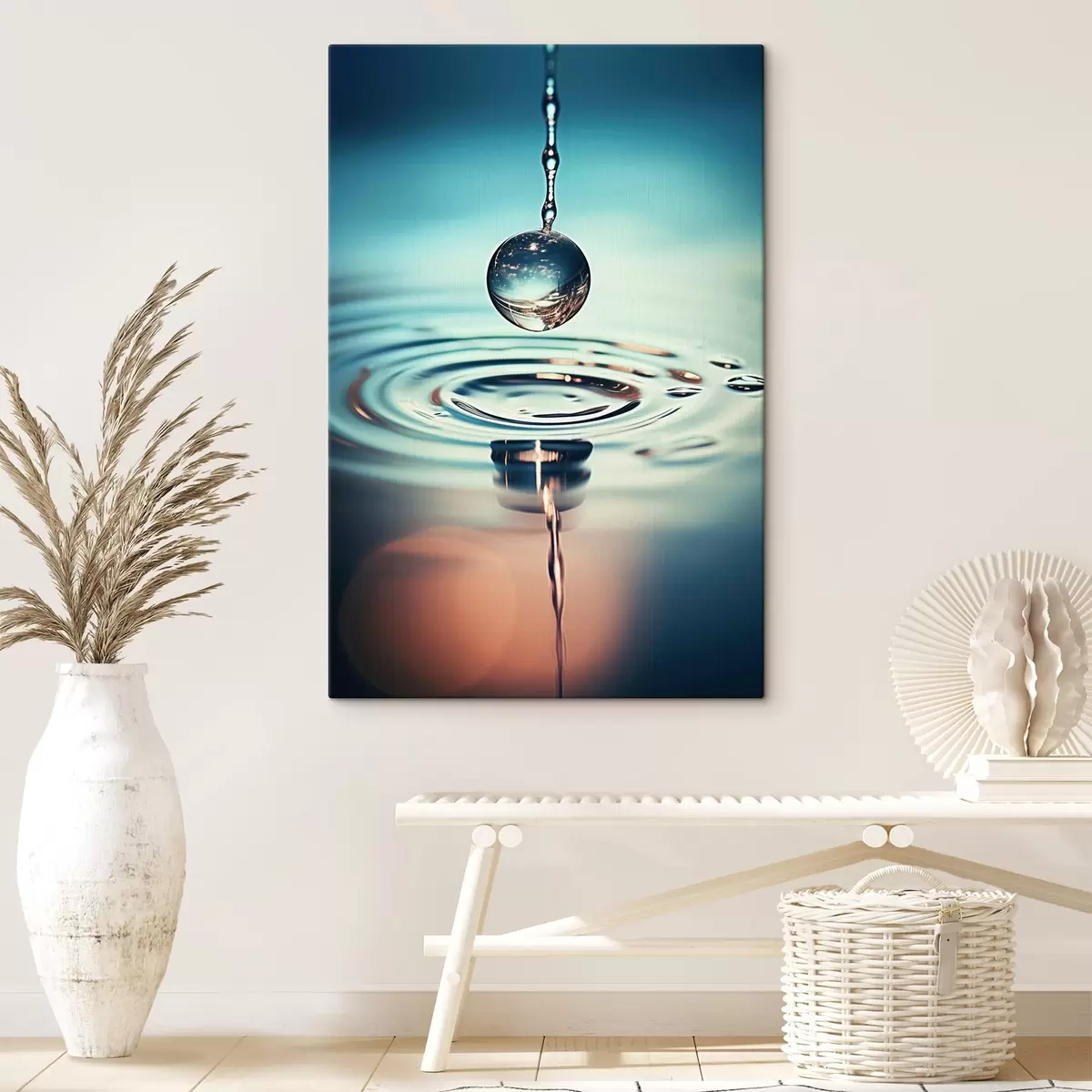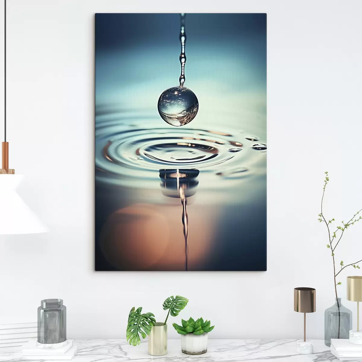Schilderij Een waterdruppel die valt met lichtflitsen Art. s45501