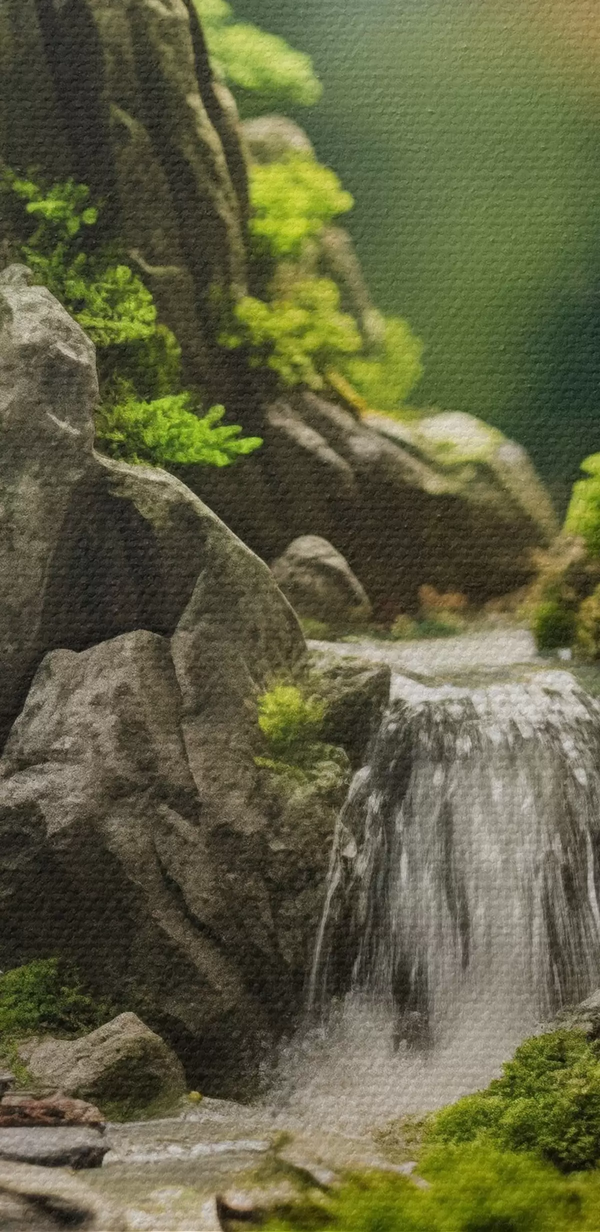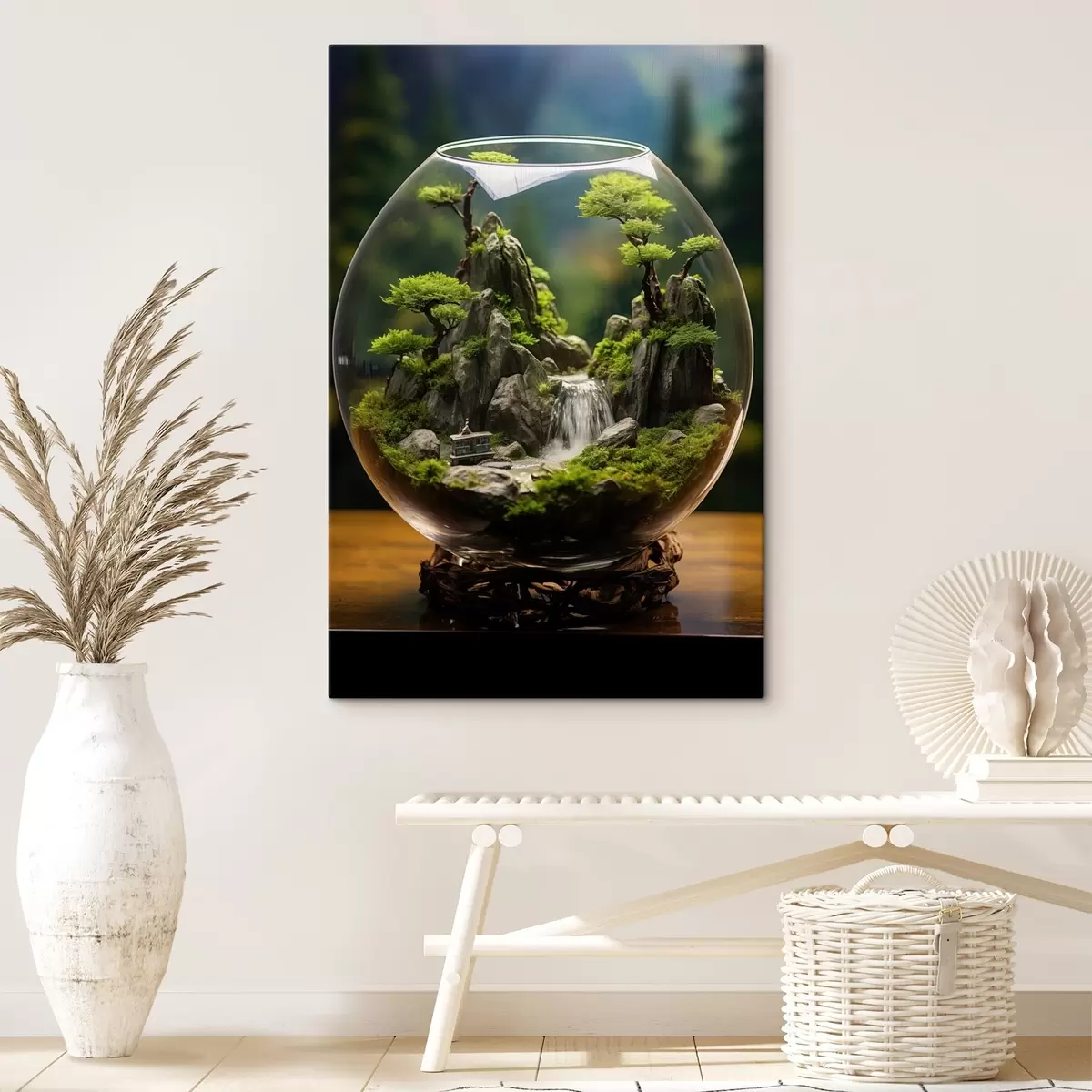 Schilderij Miniatuurlandschap met waterval in een glazen bol Art. s45502