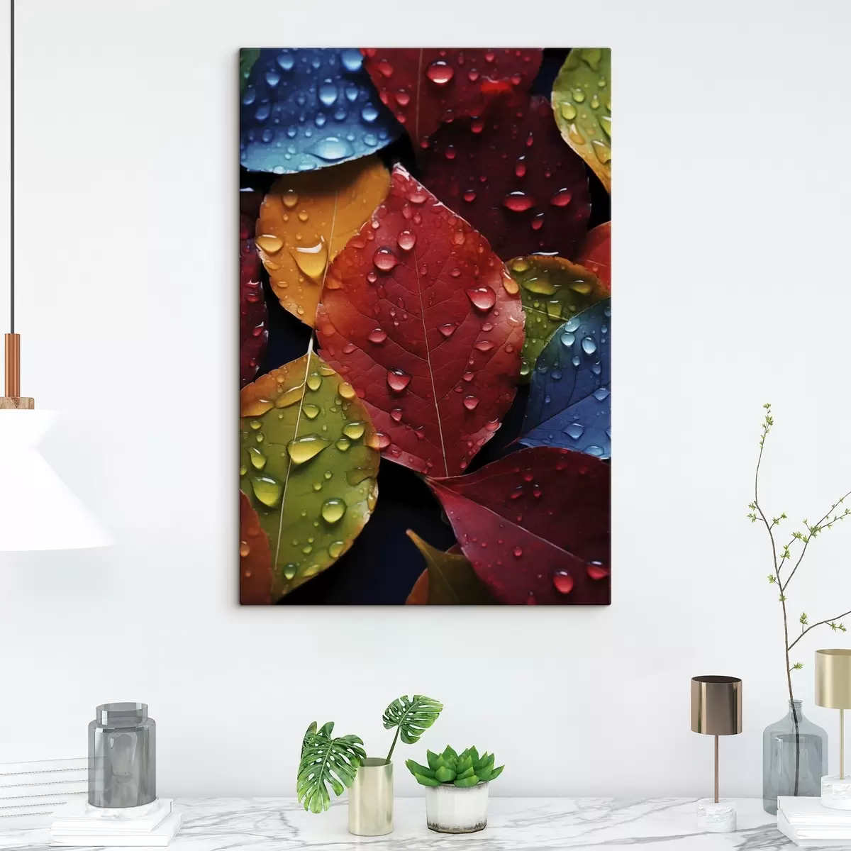 Schilderij Kleurrijke bladeren met waterdruppels Art. s45516
