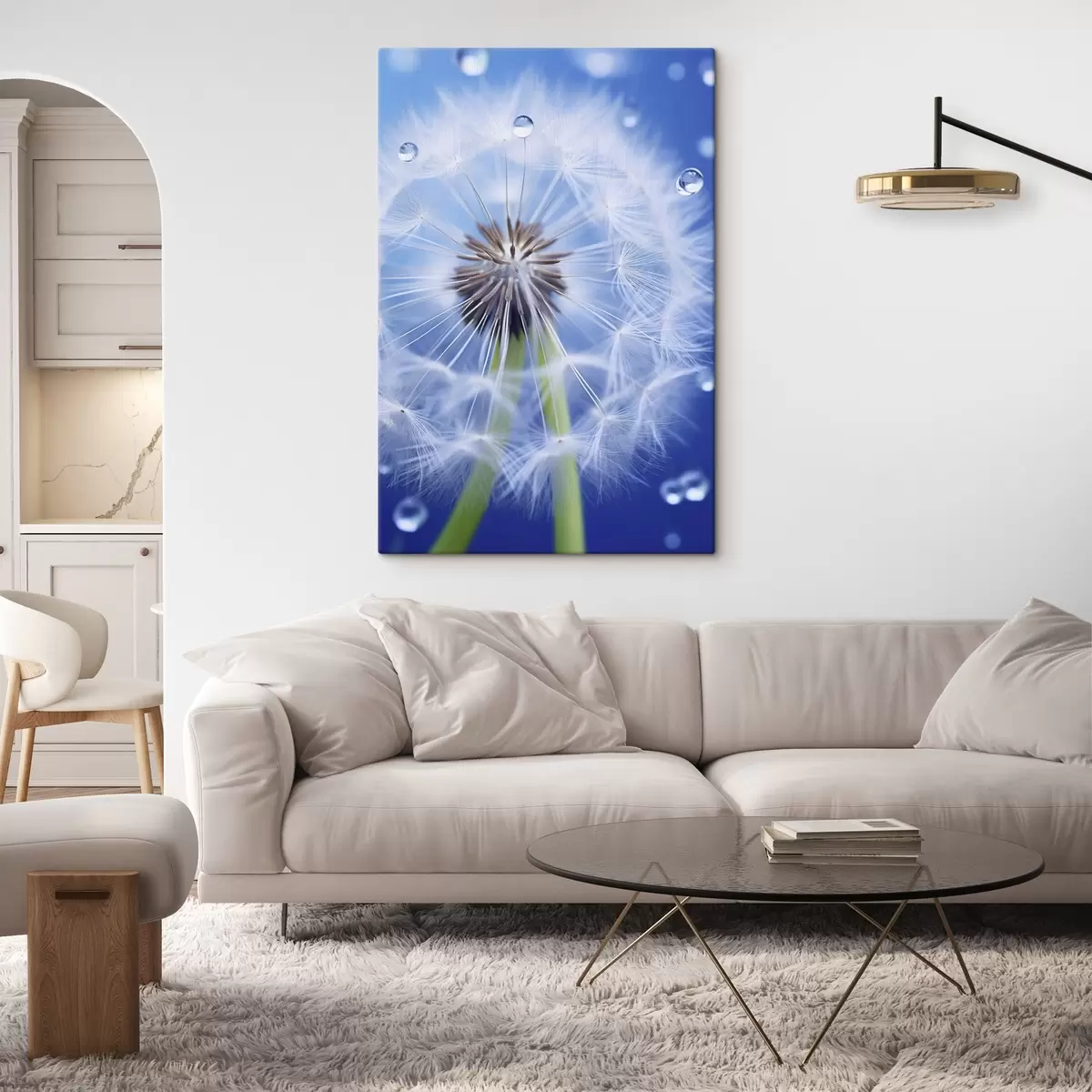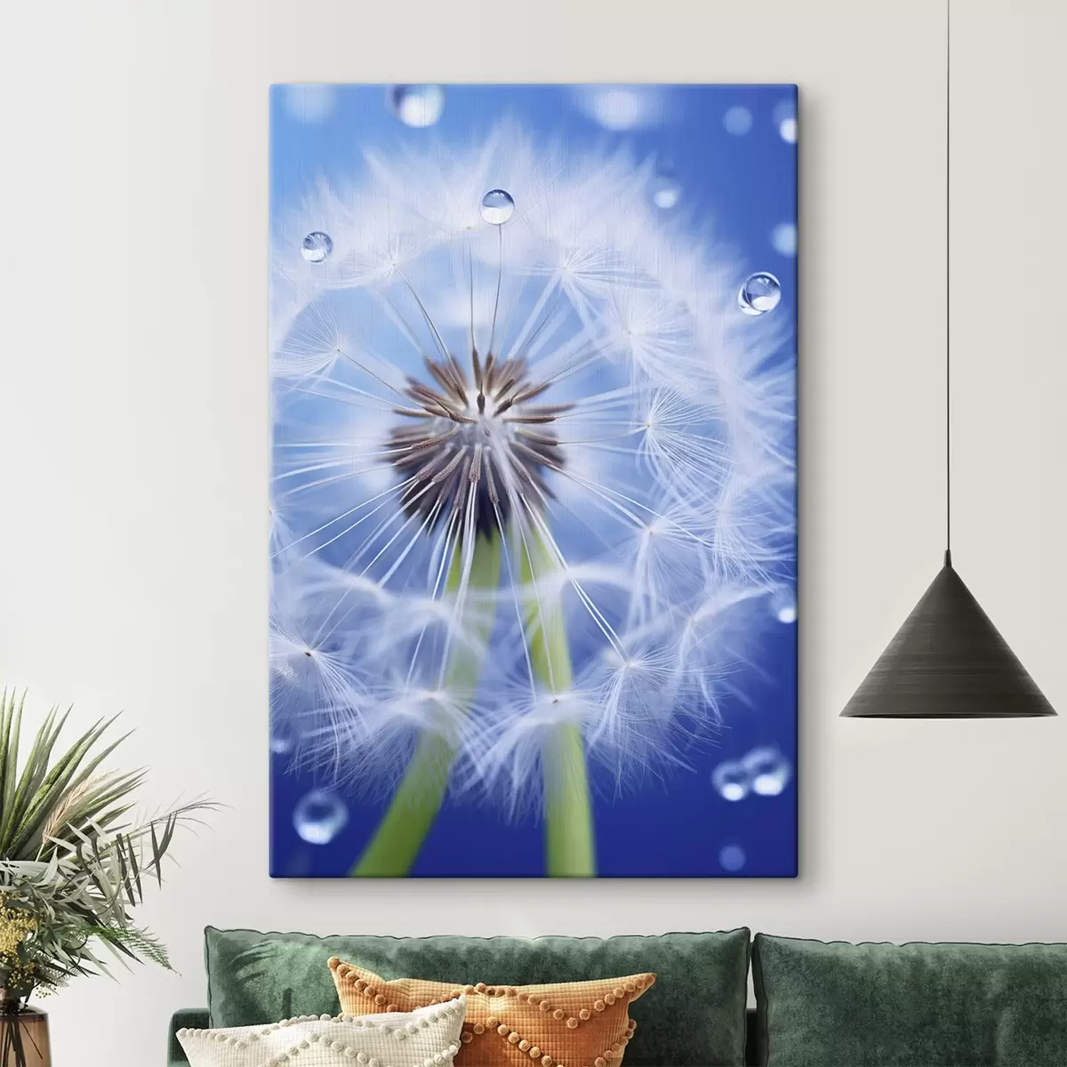 Schilderij Macro-opname van een paardenbloem op een blauwe achtergrond Art. s45517
