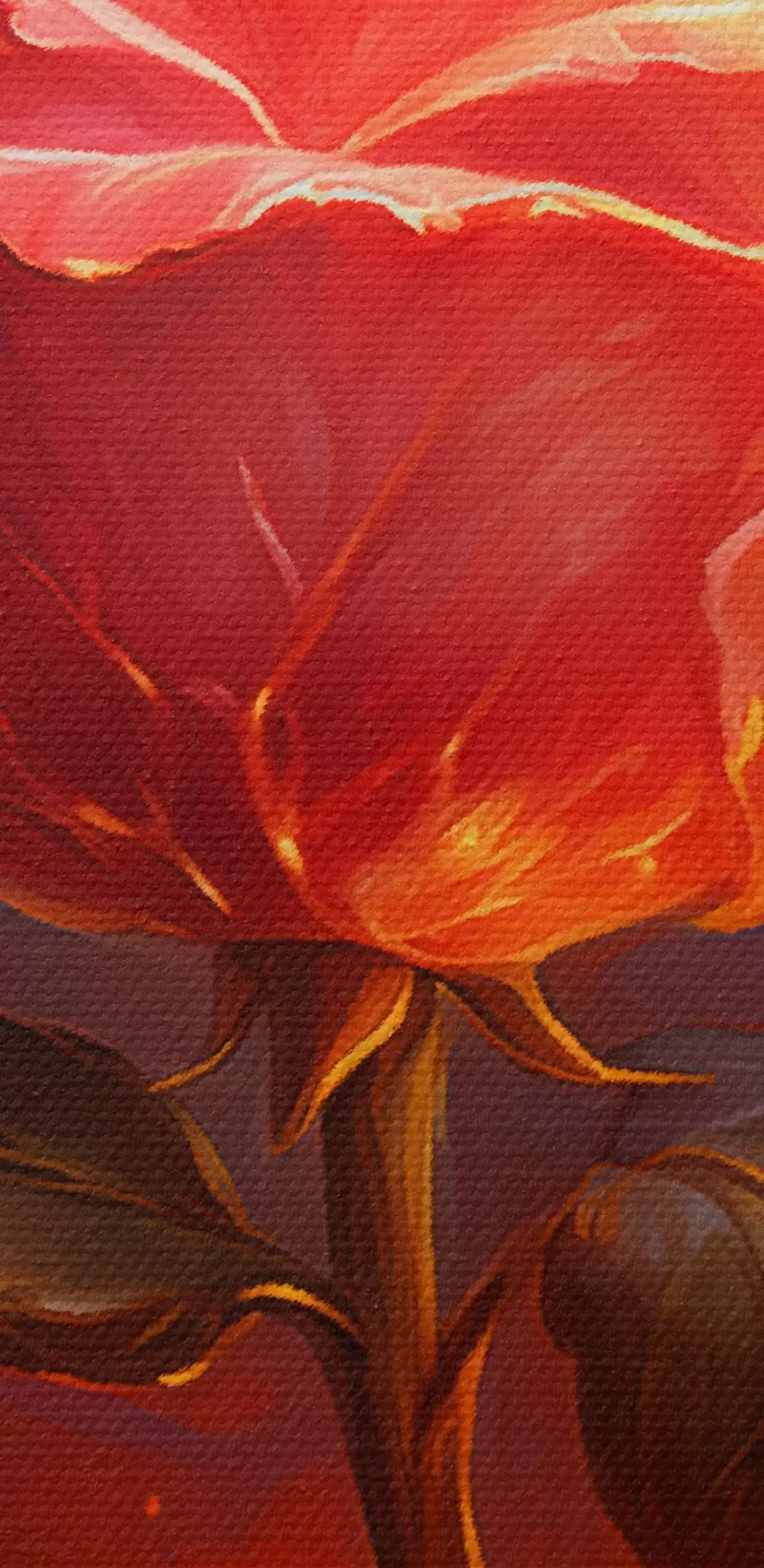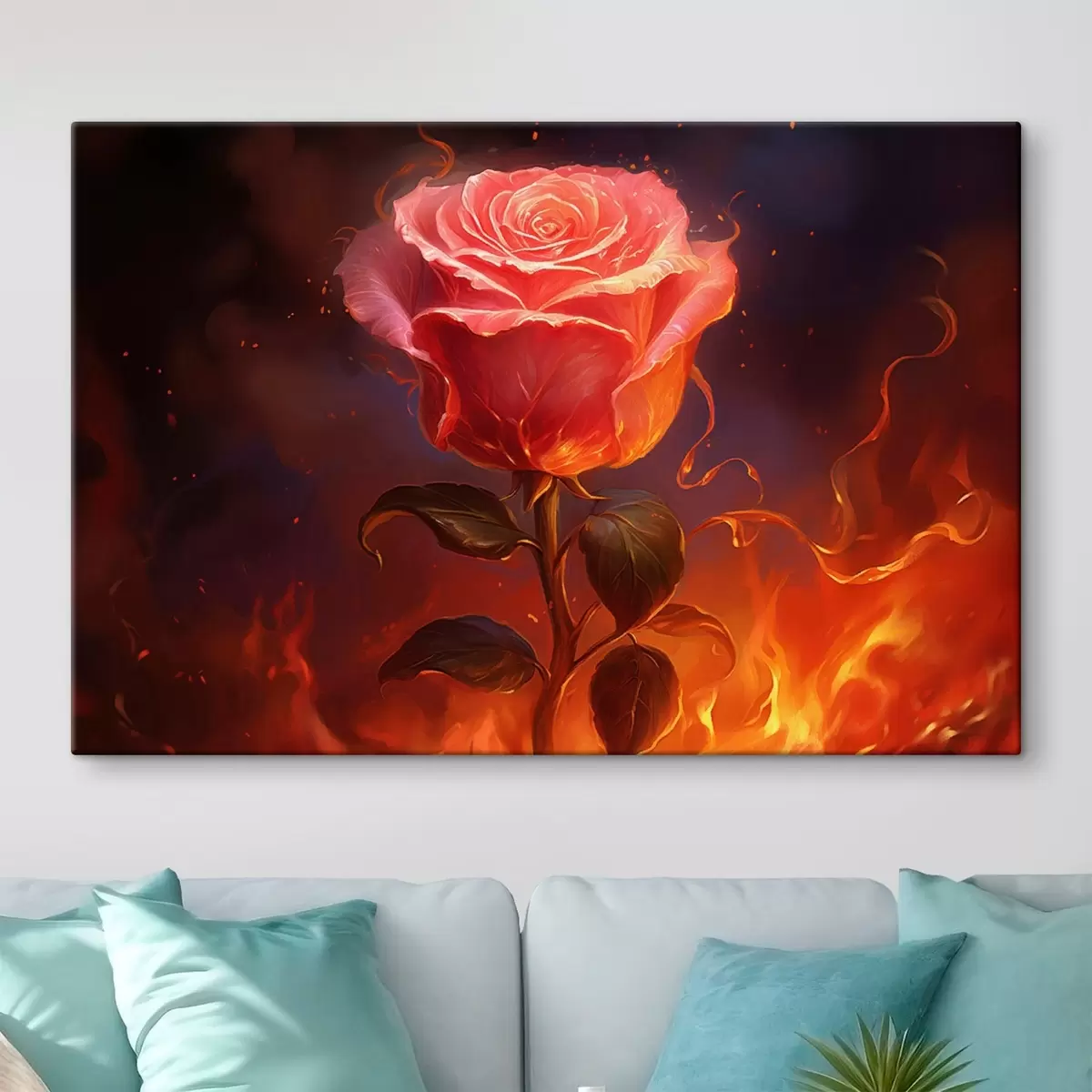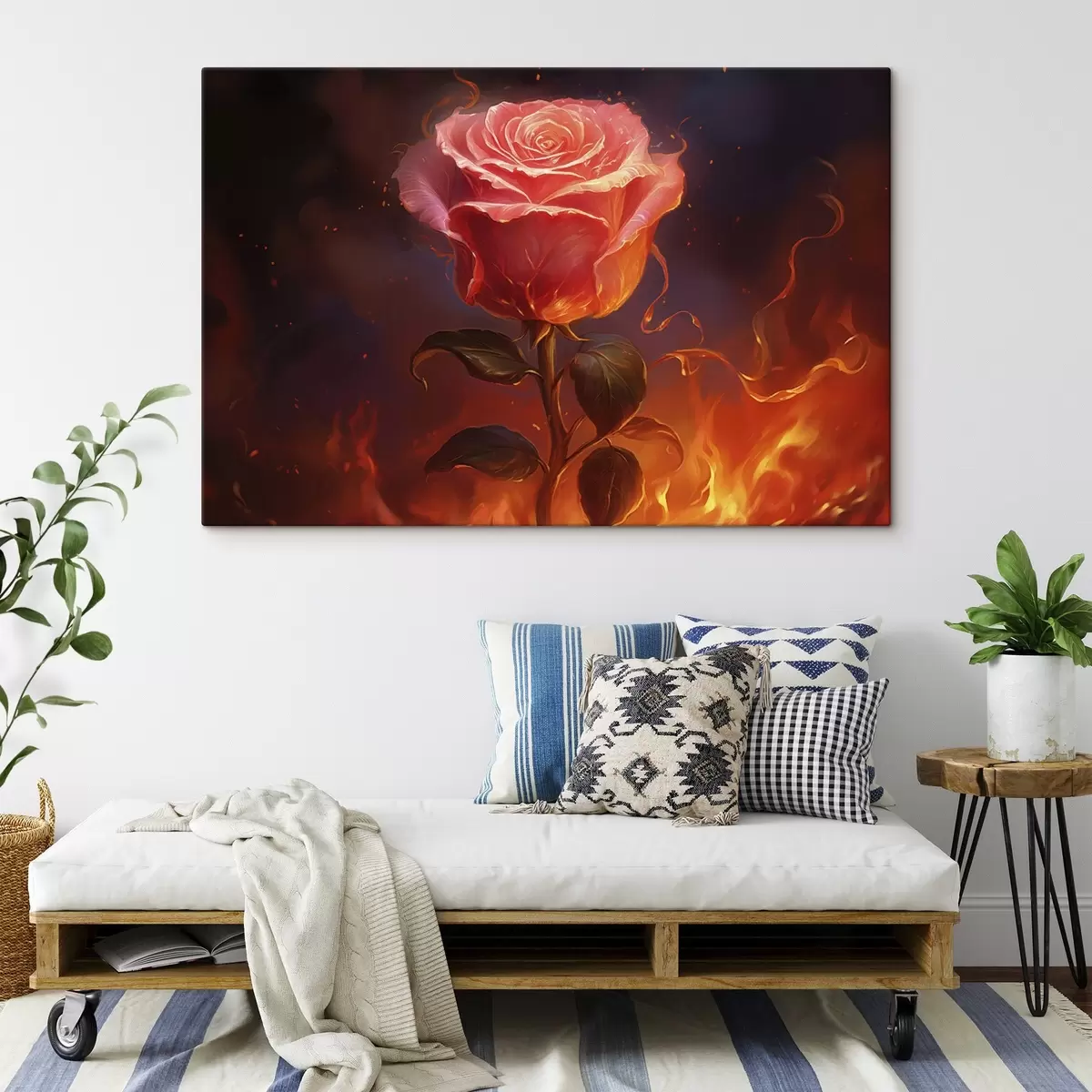 Schilderij Rode roos tussen vuur en vonken Art. s45523