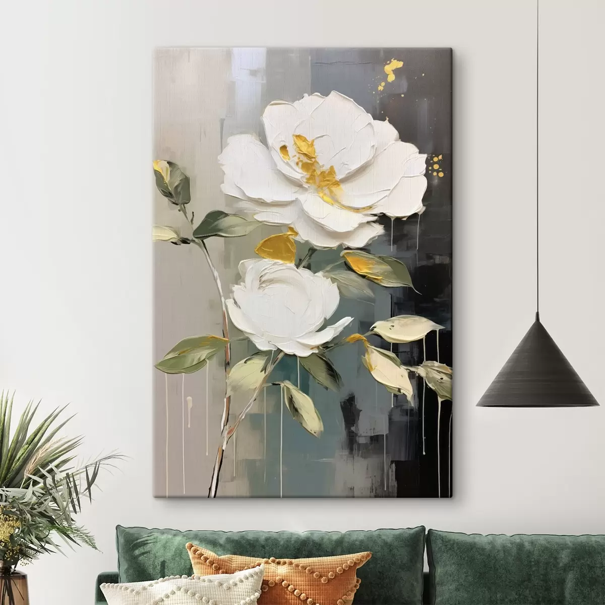 Schilderij Volumineuze bloemen: decoratief motief in lichte en donkere tinten Art. s45531