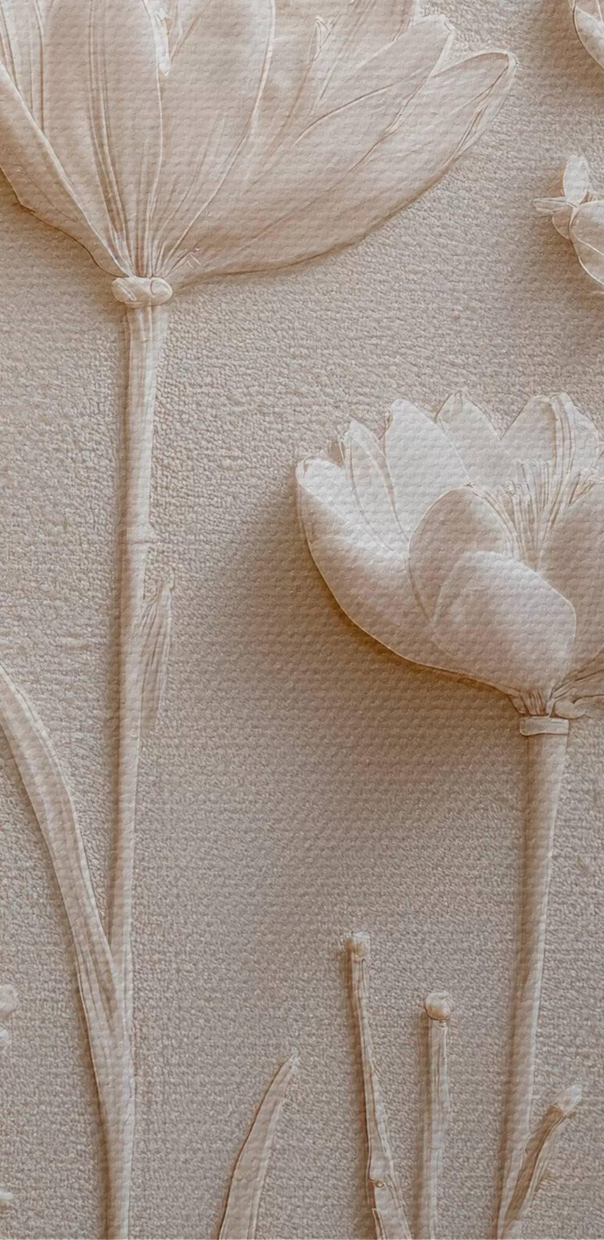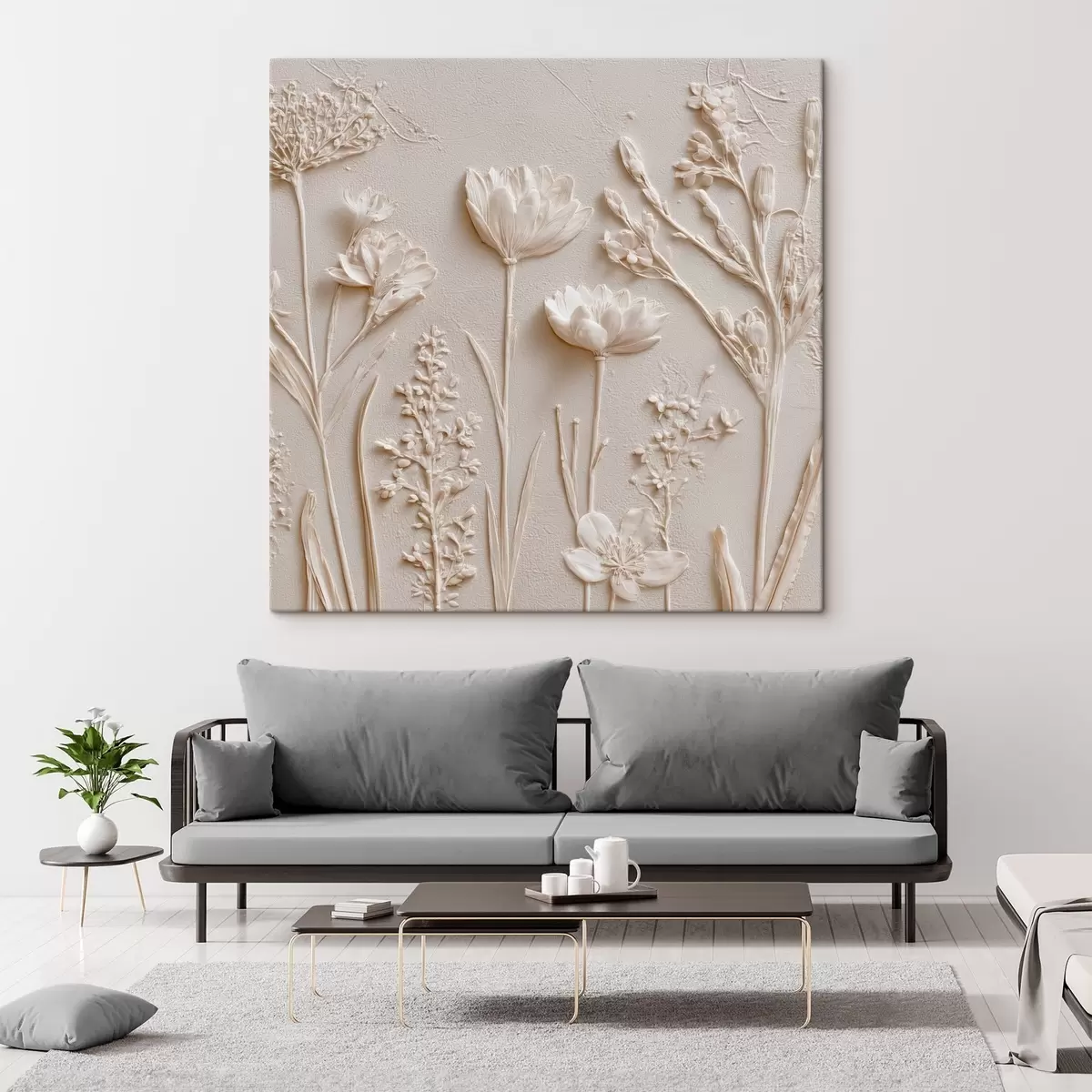 Schilderij Abstracte compositie: bas-reliëfstijl met bloemen op een lichte achtergrond Art. s45535