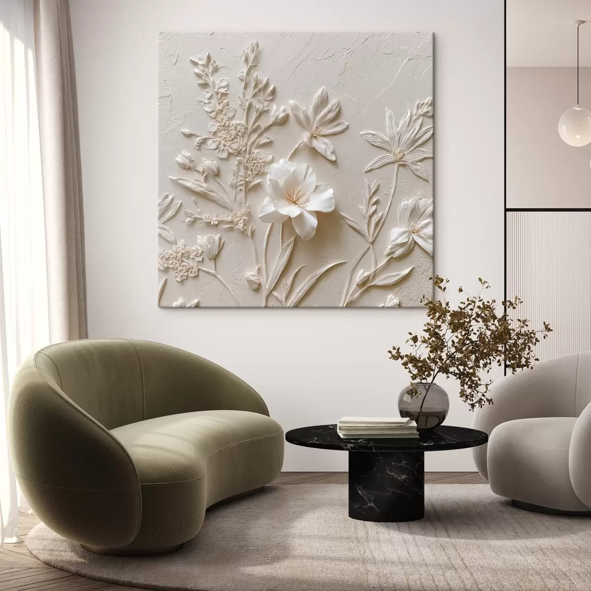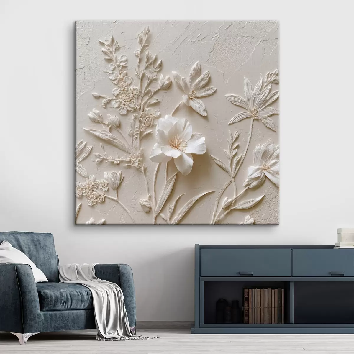 Schilderij Bloemmotief: bas-reliëf met planten op een lichte achtergrond Art. s45536