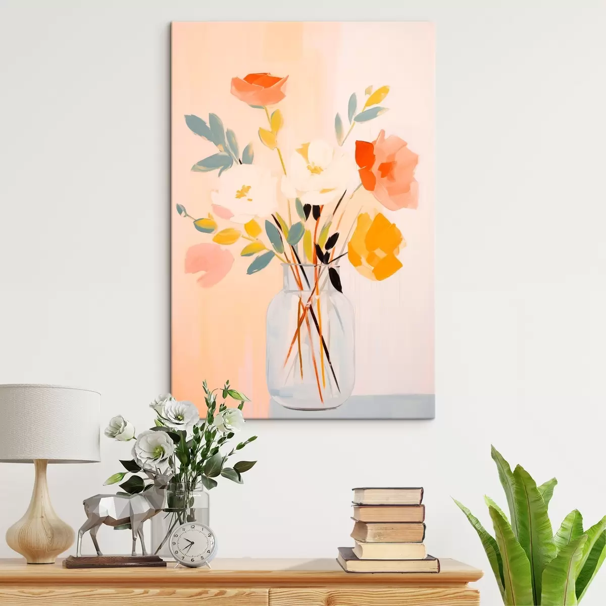 Schilderijen Decoratieve bloemen: abstract boeket in een vaas op een lichte achtergrond s45539