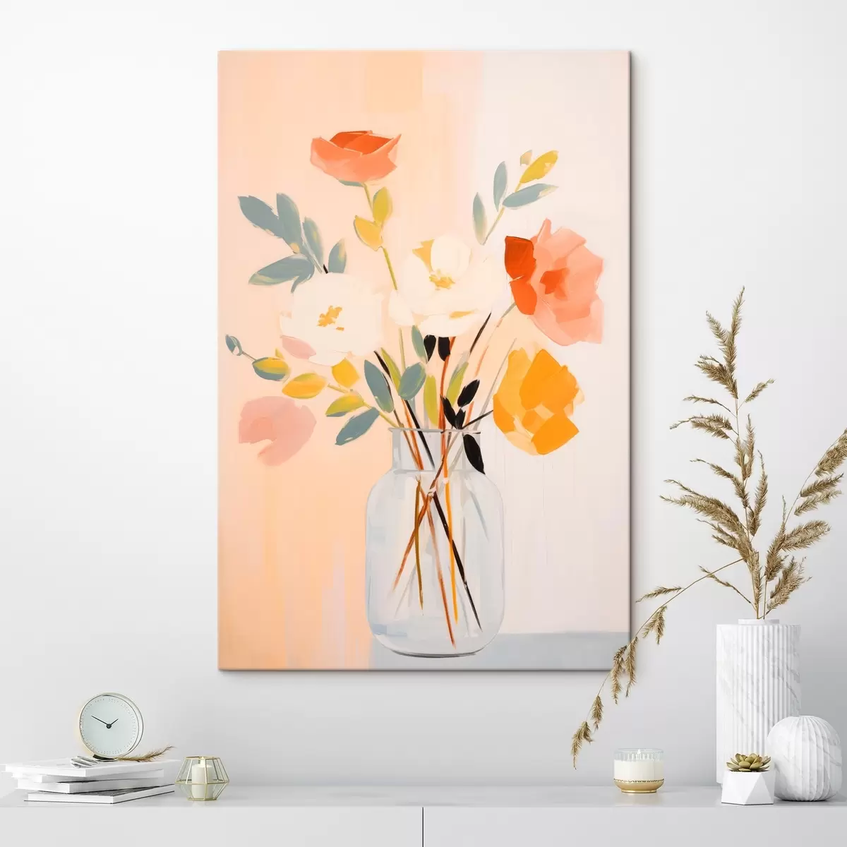 Schilderij Decoratieve bloemen: abstract boeket in een vaas op een lichte achtergrond Art. s45539