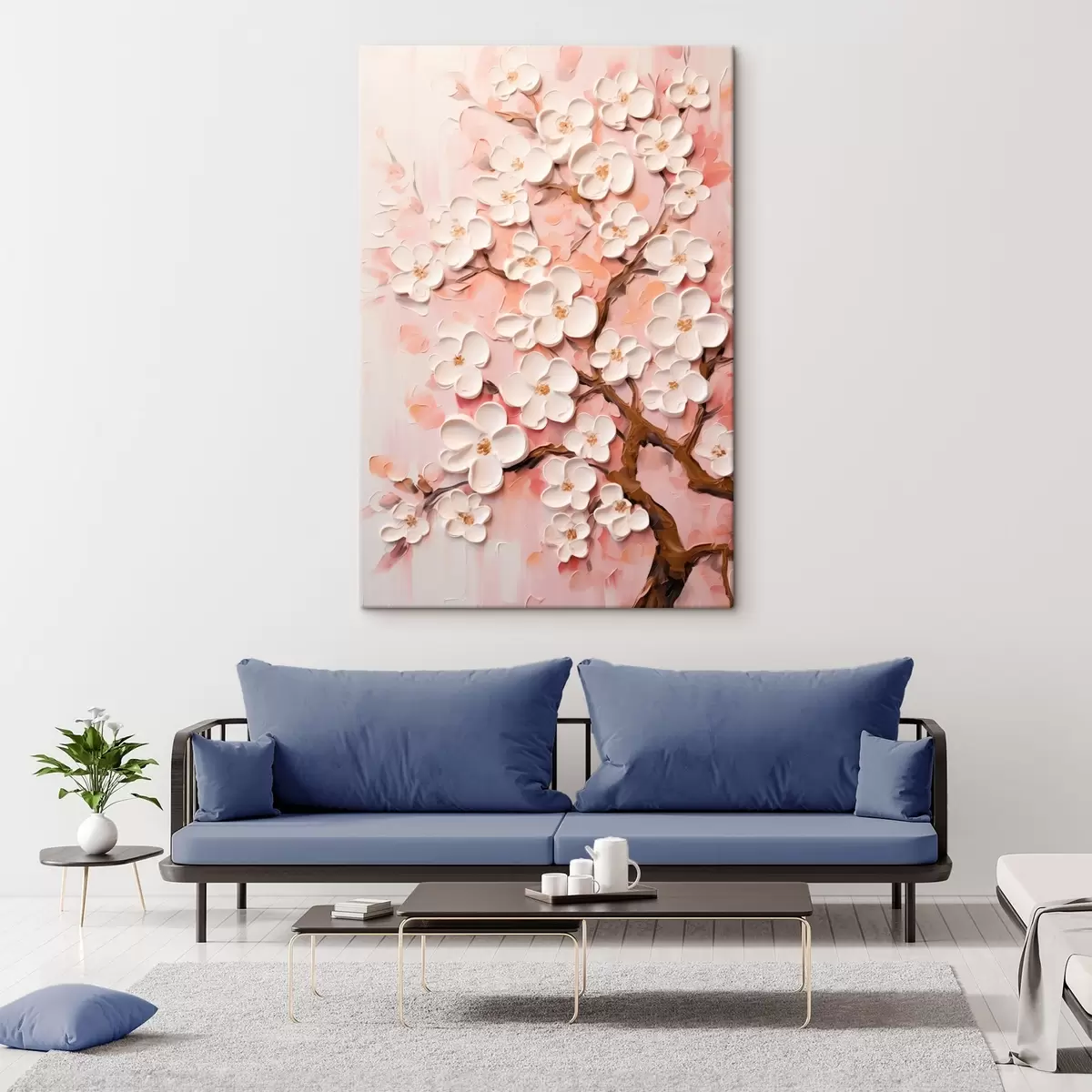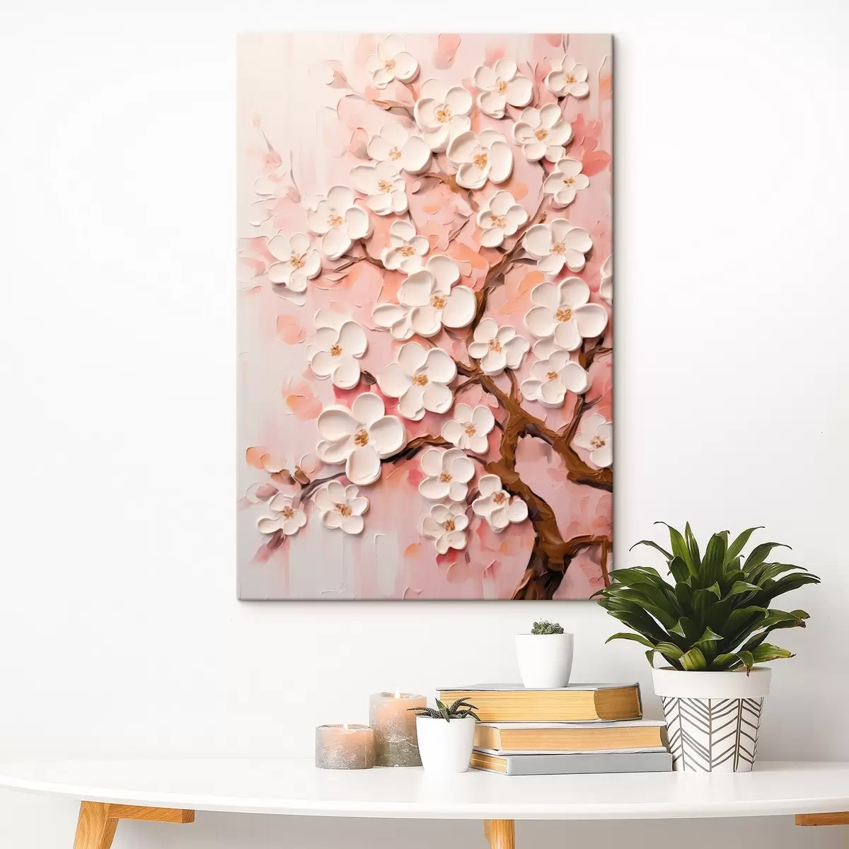 Schilderij Bloeiende tak: reliëfcompositie in lichtroze tinten Art. s45543